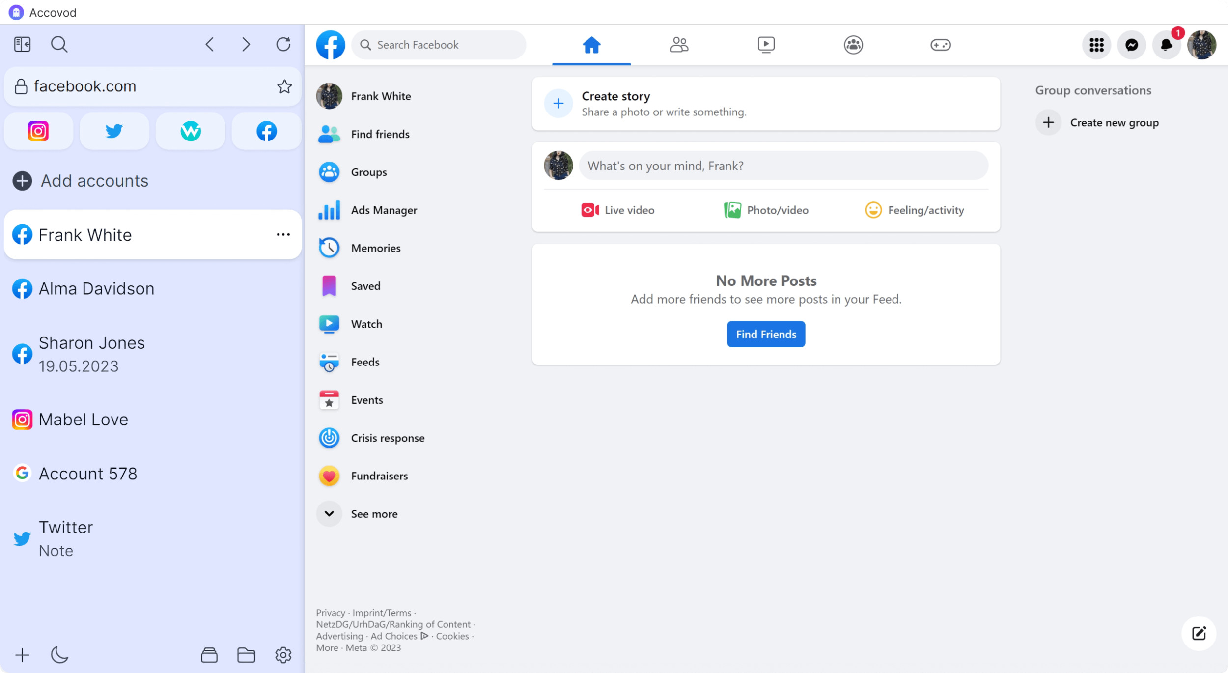 Мультиаккаунт в браузере Accovod
