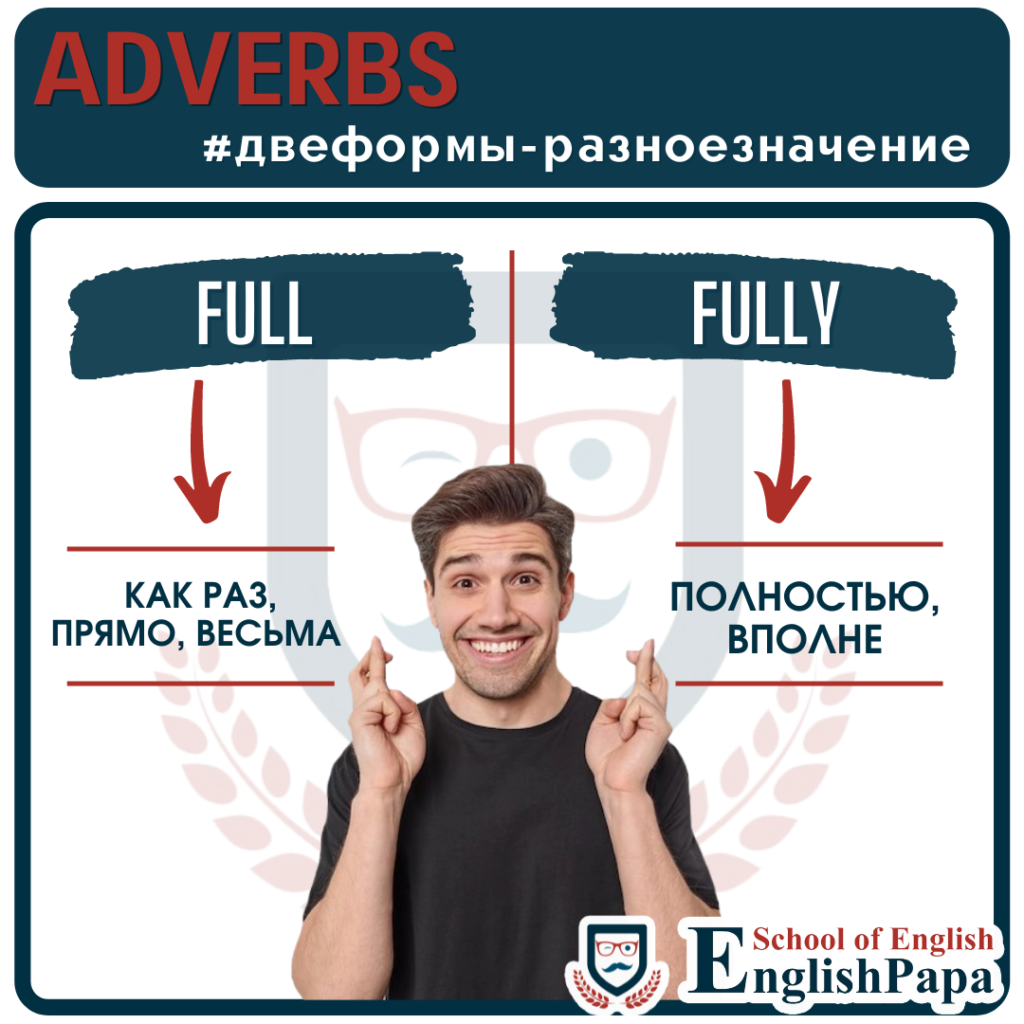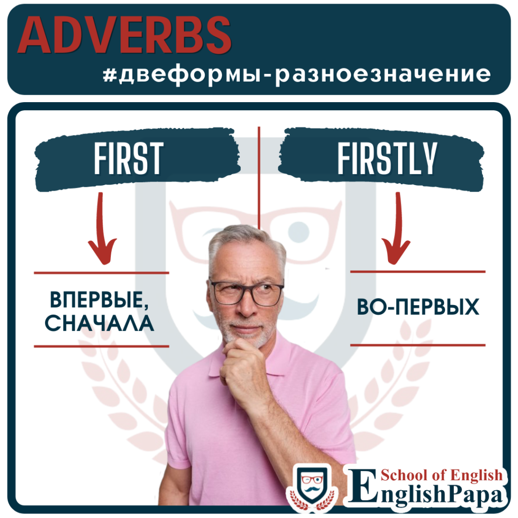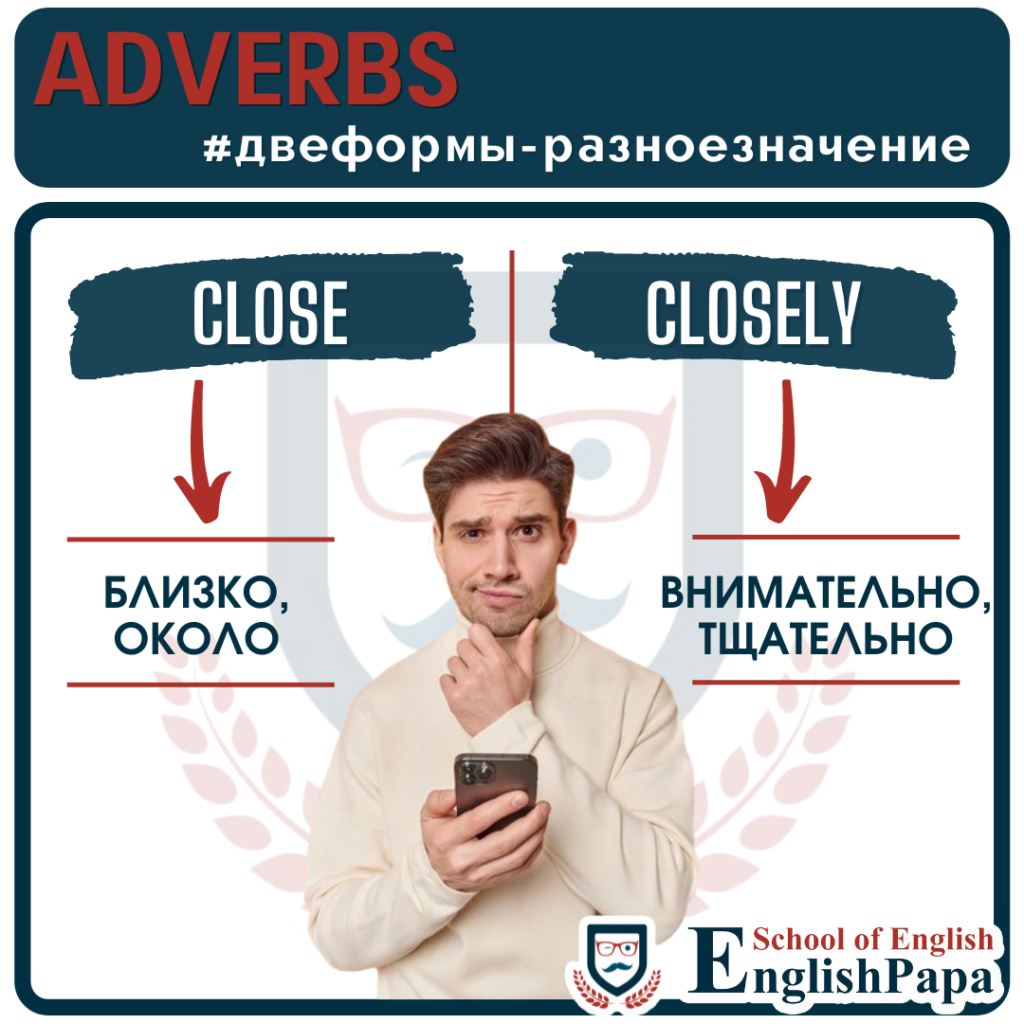 Помимо наличия уникальных значений, наречия с разными формами часто занимают и разные позиции в предложении. Без суффикса —ly обычно стоят после глагола, наречия с суффиксом —ly ставятся и перед глаголом, и после глагола, и перед неопределенным местоимением, и в других частях предложения. CloseCloselyЗначениеБлизко, около (в пространстве, во времени), под рукойТщательно, внимательноМесто в предложенииПосле глаголаДо или после глаголаПример употребленияDon’t drive so close to the car in front of you. — Не подъезжайте так близко к впереди идущей машинеI have been closely following the happenings. — Я внимательно следил за событиями FineFinelyЗначениеОтлично, то, что надоТонко, прекрасно, точноМесто в предложенииПосле глаголаПеред существительным, после глаголаПример употребленияShe is doing fine. — Она в порядкеA finely tuned machine will last longer without failure. — Точно настроенная машина дольше прослужит без сбоев FirstFirstly*ЗначениеВпервые, сначалаВо-первыхМесто в предложенииДо и после глаголаВ начале предложенияПример употребленияToday I first noticed how funny she frowns her eyebrows when she’s angry. — Сегодня я впервые заметила, как забавно она хмурит брови, когда сердитсяThere are three factors to take into account: firstly cost, secondly time, and thirdly staff. — Необходимо учитывать три фактора: во-первых, стоимость, во-вторых, время и, в-третьих, персонал FreeFreelyЗначениеБесплатноСвободно, неограниченноМесто в предложенииПосле глаголаДо и после глаголаПример употребленияBuy two shirts and get one free. — Купите две рубашки и получите одну бесплатноSpeak freely (Speak without fear or inhibition). — Говорите свободно (без страха и запретов) FullFullyЗначениеКак раз, прямо, весьмаПолностью, вполнеМесто в предложенииПосле глаголаДо и после глагола, разбивая составное сказуемоеПример употребленияThe soldier was hit full in the chest. — Солдат был ранен точно в грудьWe are fully aware of the dangers. — Мы полностью осознаем опасность HardHardlyЗначениеУсердно, упорноЕдва лиМесто в предложенииПосле глаголаПеред глаголом, перед неопределенным местоимениемПример употребленияShe’s working hard to finish the project by tomorrow. — Она прилагает все усилия (усердно трудится), чтобы закончить проект к завтрашнему днюI hardly got any work done with all the noise. — Из-за шума я почти не работал.Hardly anyone showed up for my party. — На мою вечеринку почти никто не пришел *В употреблении этой пары есть особенности. Вместо firstly в английском языке, особенно в британской версии, чаще используется first в таком же значении. Они взаимозаменяемы в этом случае. First(ly), I want to note the excellent preparation for the seminar. Second(ly), I want to thank all the participants. — Во-первых, я хочу отметить отличную подготовку к семинару. Во-вторых, хочу поблагодарить всех участников. Наречий, которые с изменением формы меняют и значение, в английском языке много, и в следующих статьях мы продолжим знакомить вас с ними.