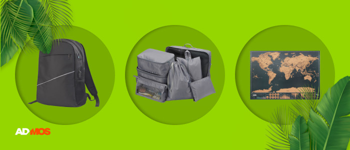Путешествие начинается с того момента, когда мы собираем вещи. Готовим сумки и чемоданы, которые, конечно, будут с вашим логотипом, а заодно достаём несессеры для важных мелочей и стильные тревеллеры для документов и билетов. Любимые уходовые средства можно перелить в брендированный дорожный набор и взять с собой нестандартную зубную щётку с пастой внутри. И конечно, следим за весом собранных вещей. В этом помогут багажные весы. Пригодятся для чемодана брендированный чехол с оригинальным дизайном и бирка.
