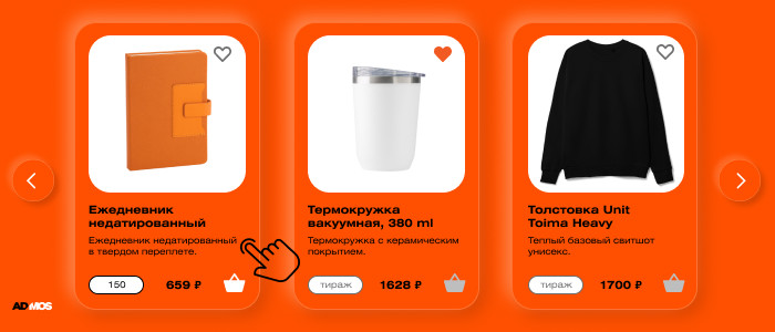 В вебшоп стоит добавить и офисные расходники: ручки, блокноты, ежедневники, ленты для бейджей и не только. Они будут полезны дистрибьюторам, отделам и франчайзи для поддержания единого стиля сувенирной продукции и упрощения процесса её заказа, а также для сотрудников компании. Веб-магазин объединяет заказы. Это особенно удобно, если у компании есть несколько филиалов: так каждый отдел сможет самостоятельно приобретать продукцию. Администратор магазина может удаленно контролировать и утверждать заказы. А еще внутренний вебшоп: О том, как запустить вебшоп на внутреннюю и внешнюю аудитории и как мы организовали собственный ADMOS-шоп, читайте в новом материале нашего корпоративного блога.