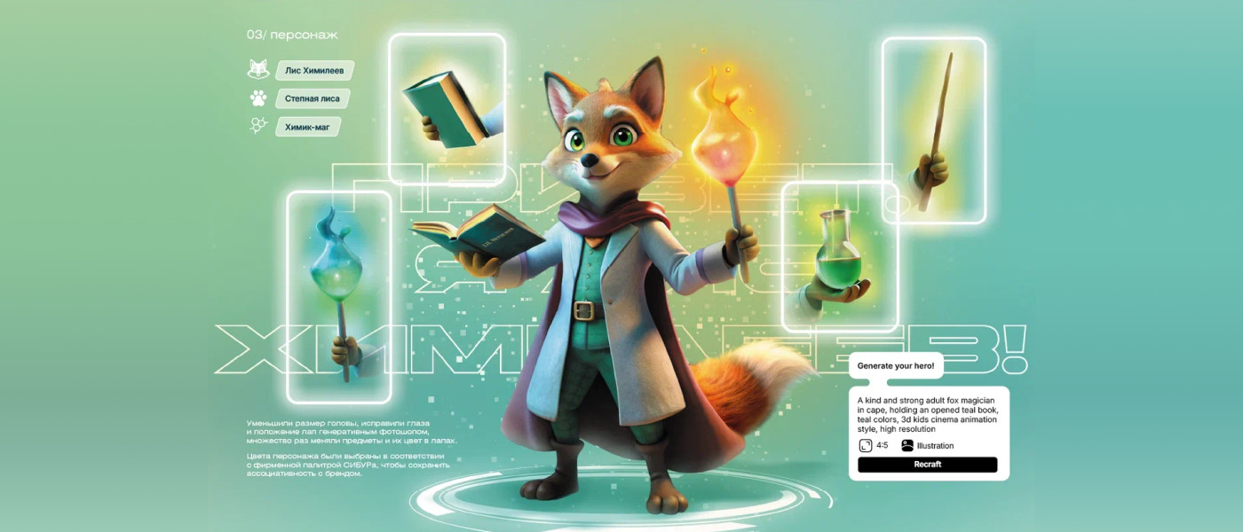 В конкурсе приняли участие 400 работ, а в нашей номинации — «Графический дизайн» были представлены 71 работа от компаний и независимых дизайнеров. Наш проект — «Профессор Химилеев» для компании СИБУР оказался в числе 16 лучших.