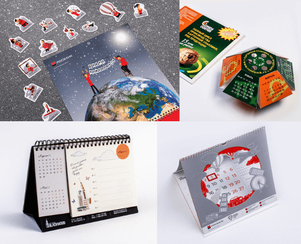 С помощью дизайнерских решений создаются корпоративные календари на заказ, которые будут максимально отражать фирменный стиль компании.