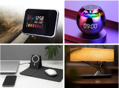 - футуристичая настольная лампа с функцией беспроводной зарядки;