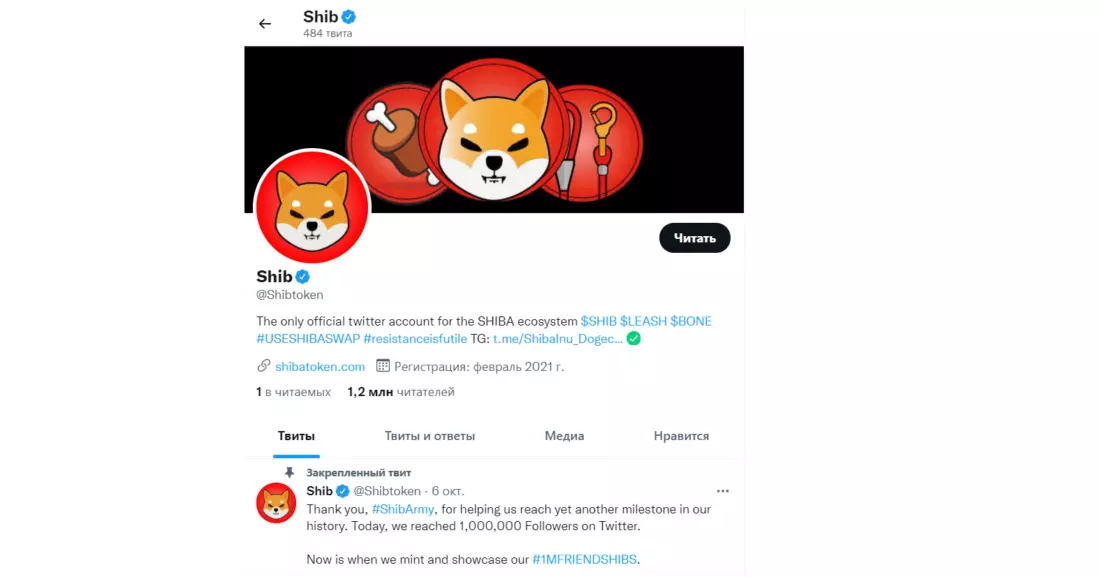 К примеру, вы удивитесь, но у официального аккаунта Shib в Twitter более 1,2 миллиона подписчиков — больше, чем у Cardano (ADA), Kraken и Solana (SOL).
