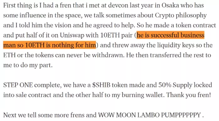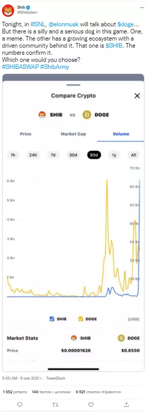 Бутерин является „другом SHIB“». Как и DOGE, SHIB приобрел популярность сразу же после запуска, но цена оставалась на одном уровне примерно 8 месяцев, где ничего не происходило.
