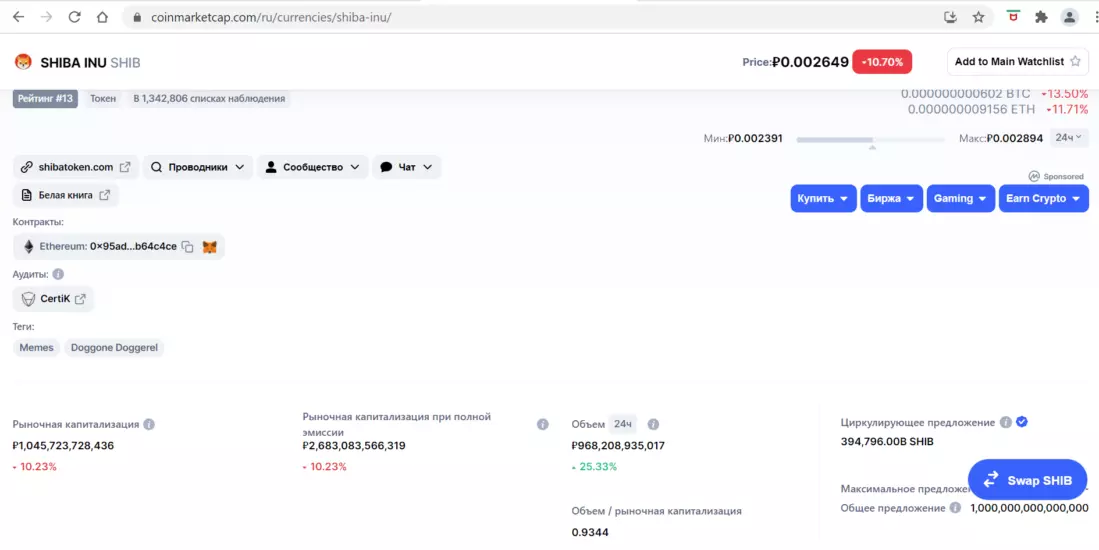 Shiba inu (SHIB) — токен на блокчейне Ethereum, популярность которого выросла в этом году во многом благодаря его уникальной экосистеме и собачьей тематике, а также спекуляциям на его цене со стороны розничных инвесторов и активному участию сообщества монеты.