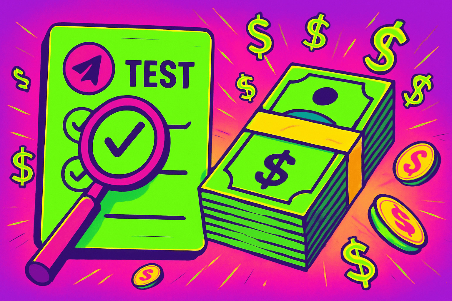 Тест в Telegram — это исследование рынка: вы платите за информацию, которая затем поможет тратить бюджет осознанно.