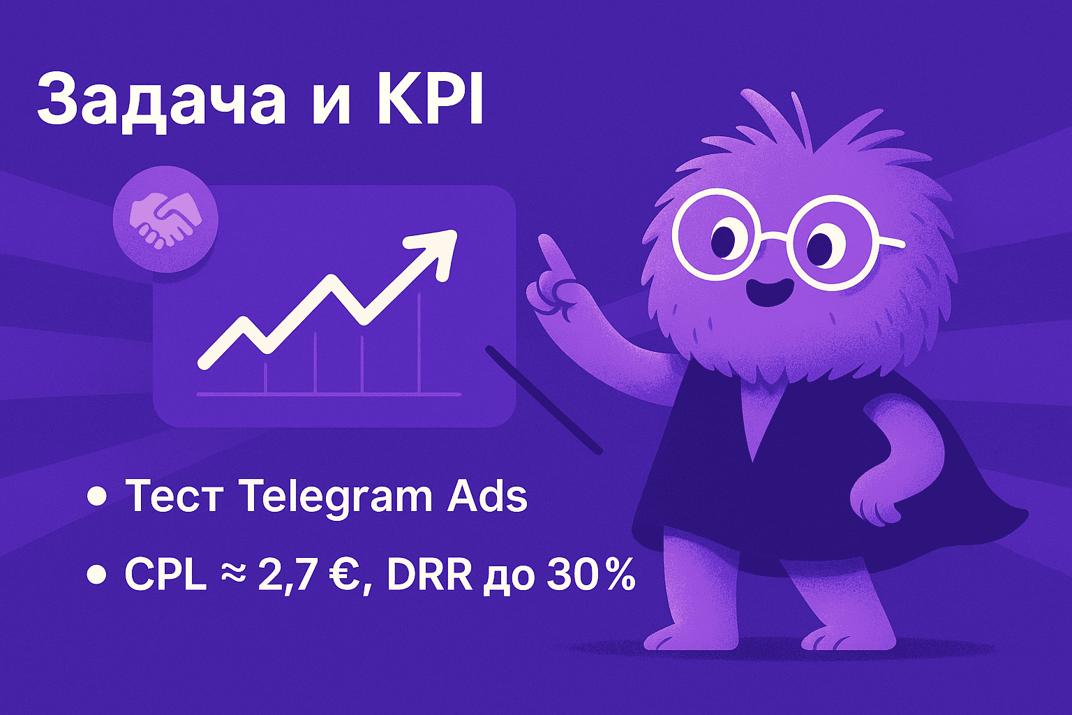 Ключевая цель — поиск нового, стабильного канала масштабирования + сбор статистики.У школы уже был некоторый поток заявок, приходящих из соцсетей. Однако для дальнейшего развития был необходим новый источник стабильного, предсказуемого, холодного трафика.Ранее клиент уже пробовал продвигаться через VK. Результаты его не удовлетворили, и он решил попробовать зайти в Telegram. Здесь была попытка продвигаться через посевы. Однако она оказалась не очень успешной — окупаемость получилась почти нулевой. Собрать надёжные статистические данные также не получилось.Тогда клиент решил обратиться в наше агентство, чтобы протестировать таргетированную рекламу в Telegram Ads.Совместно с клиентом мы наметили минимальные KPI для тестового запуска: