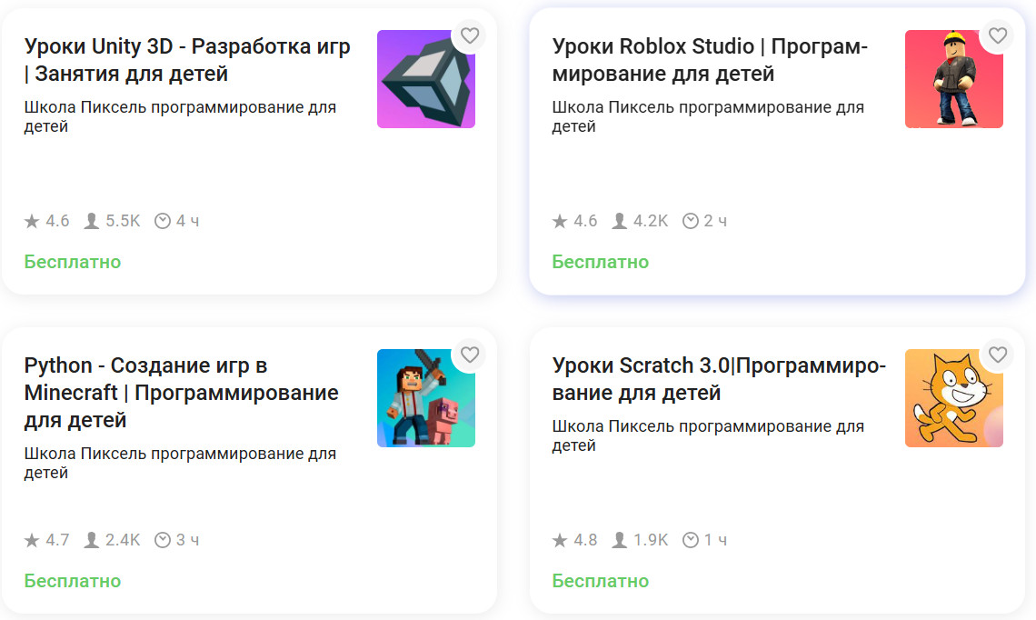 Большинство бесплатных курсов охватывают базовые направления в программировании. Это не развлекательные приложения, а полноценные обучающие модули, адаптированные под школьный возраст.