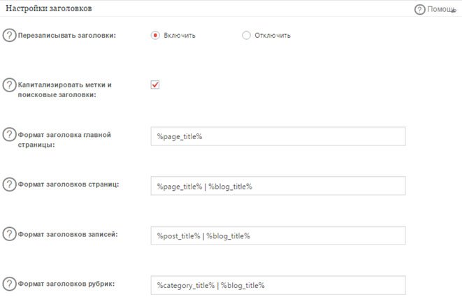 Настройки заголовков