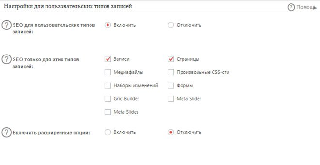 В тоже время, рекомендуется выбрать вариант /%postname%.htm или /%postname% Затем следует выполнить базовые настройки SEO оптимизации вашего сайта, но для этого придется установить соответствующие плагины. В самом движке WordPress имеется великое множество, как платных, так и бесплатных. Мы же будем предлагать «All in One SEO Pack», который на сегодня является самым скачиваемым плагином для WordPress (свыше 30 миллионов закачек). Установить плагин можно сразу из Админ-панели сайта на WordPress. Нужно перейти по вкладке: Плагины — Добавить новый, введите название плагина в форму поиска, нажмите Enter, установите и активируйте плагин. Данный плагин обладает следующими основными возможностями: В настройках странице или записи представлены три поля: «Заголовок», «Описание» и "Ключевые слова (разделять запятыми). Главное нужно весьма ответственно отнестись к заполнению этих трех полей, так как это очень важный шаг, поскольку посредством таким образом вы представляете ваш сайт поисковым системам и пользователям Интернета. Настройка для пользовательских типов записей По умолчанию плагин вполне способен работать с любыми типами записей. Так что рекомендуется оставить первый пункт включенным. Однако можно выбрать дополнительные опции, если предполагается работа не только с записями и страницами. Если включена опция «SEO для пользовательских типов записей: », то к каждой конкретной странице вашего сайта (в Админ панели) прибавляются поля для заполнения title и description. Отмечаем типы страниц и записей, для которых будет актуален пункт выше. Аналогично информации предыдущего блока присваиваем галочки тем типам записи, которым будет редактировать настройки. Тег