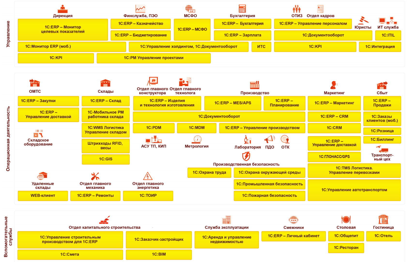 При разработке архитектуры 1C:ERP были учтены недостатки предыдущей системы и современные требования к прикладным решениям. В ней автоматизирован ряд операций, которые на базе 1С:УПП требовали существенных доработок.