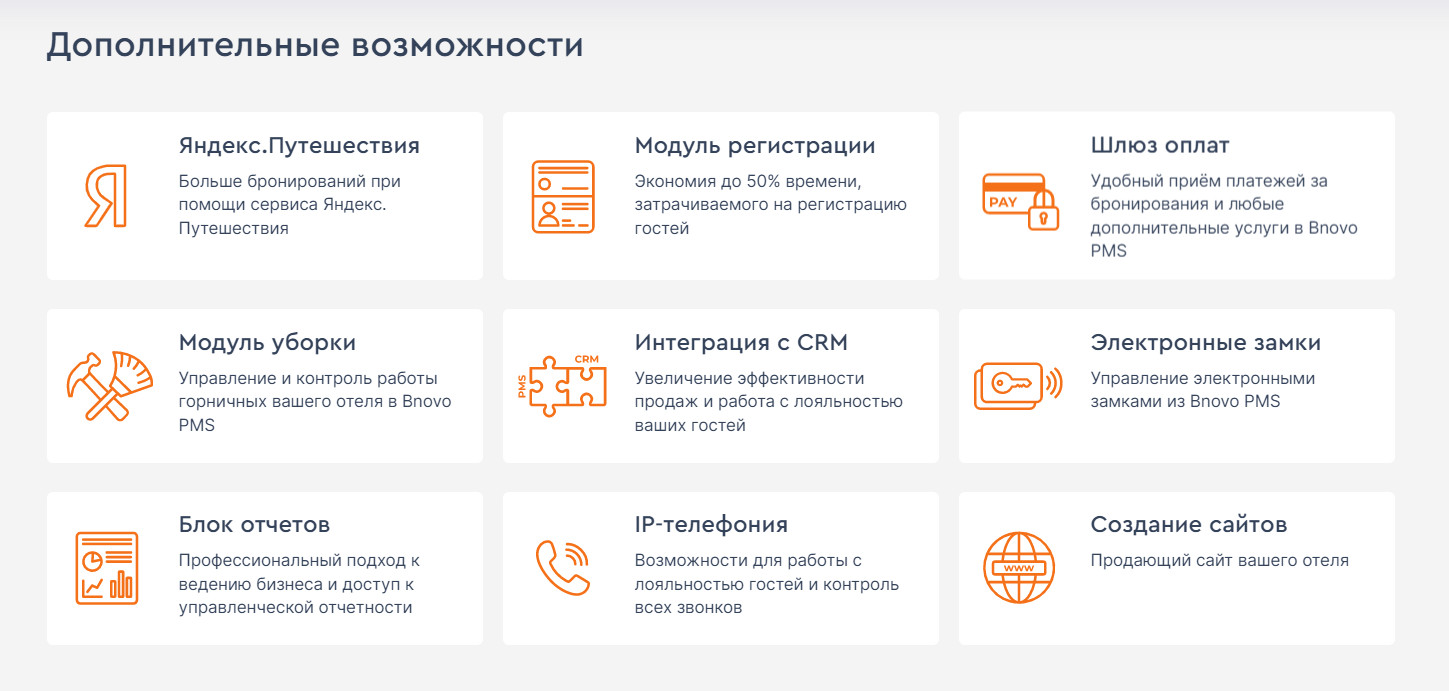 Руководство гостиниц должно максимально заботиться об обеспечении слаженного функционирования всех бизнес-процессов на уровне самых современных требований, отраслевых IT-инноваций и внедрять новые технологии. Прежде всего, необходимы первоклассные коммуникационные сервисы, такие как наша умная система управления Bnovo и высокоскоростной доступ к Интернету. Два этих пункта позволяют объекту размещения значительно снизить риски негативных отзывов клиентов, и увеличить прибыль за счет автоматизированных процессов продаж.