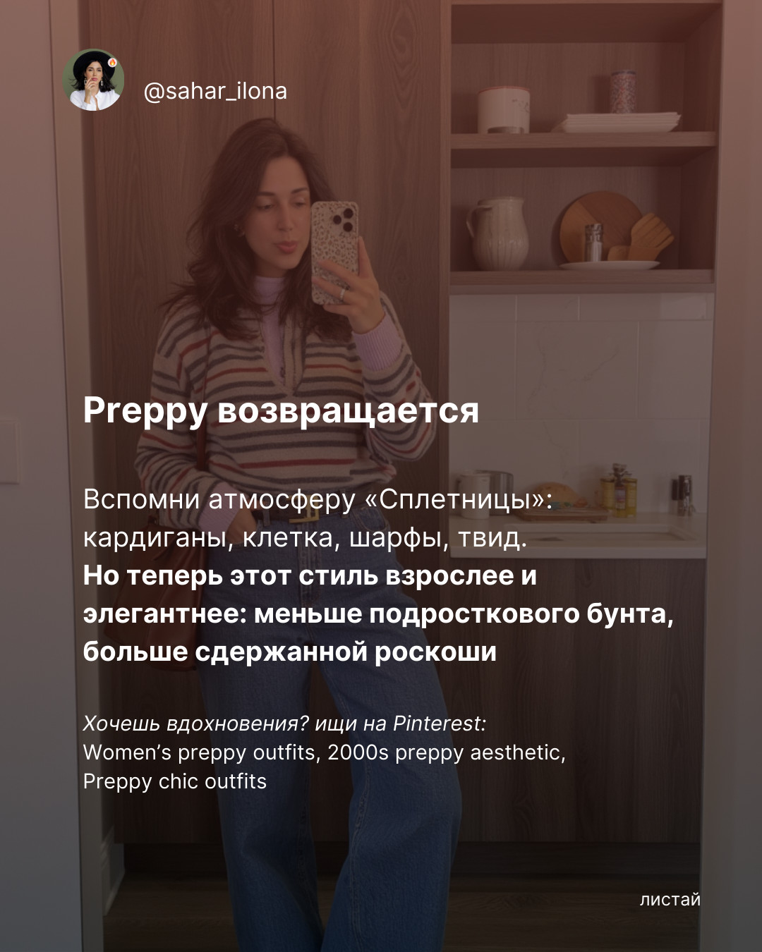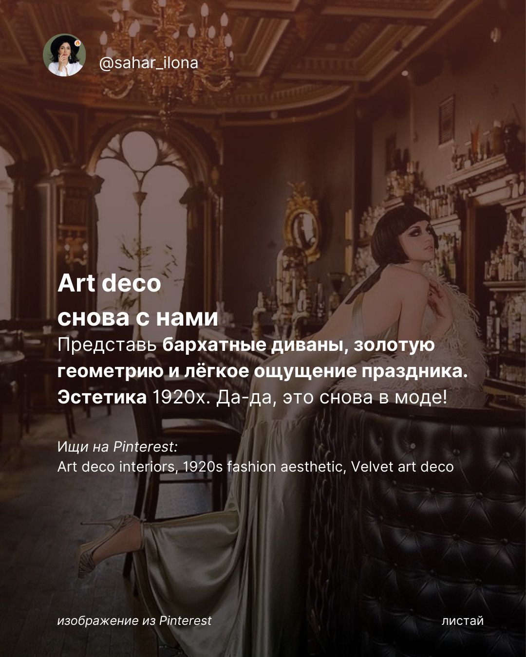 😍Это идеальное время, чтобы создать уникальное пространство в доме и собрать образ, который говорит именно о тебе.Это уже не просто «эко-тренд», это настоящая креативность, которая расцветает рука об руку с экологичностью.Pinterest это подтверждает: от ностальгии по преппи 2000-х до элегантности ар-деко — эта осень про другое. Не про то, чтобы быть «как все», а про то, чтобы находить те самые, особенные вещи. Те, что рассказывают твою личную историю.Как найти свои уникальные сокровища?Я разобрала 6 трендов от Pinterest, которые помогут найти ключ к образу с твоей личной историей⬇