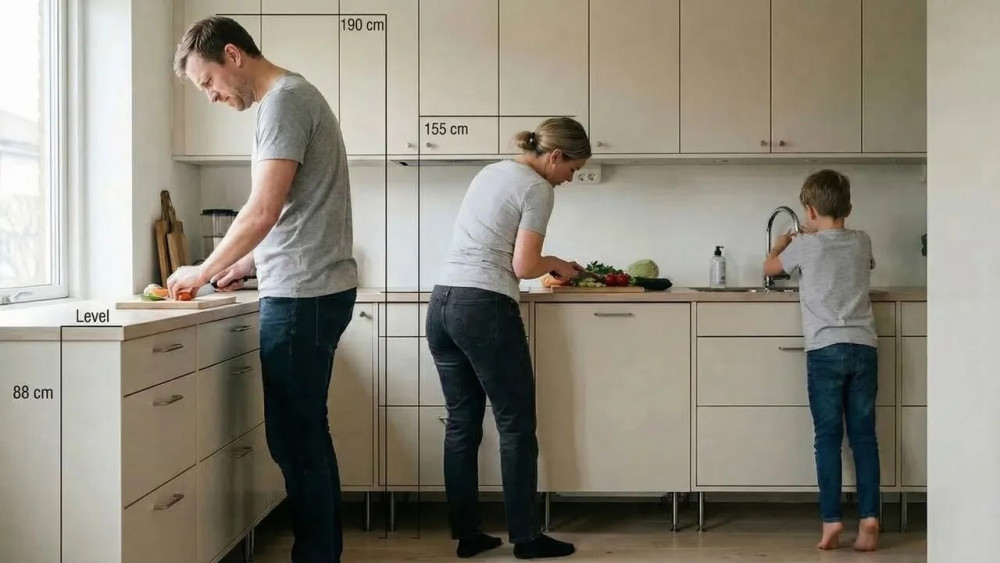Эти цифры не учитывали разницу в росте, длине рук, физиологических особенностях пользователей. Проблема в том, что «среднестатистического» человека не существует. Заставлять человека ростом 190 см или 155 см готовить на кухне, спроектированной для кого-то другого — значит обрекать его на постоянное напряжение.