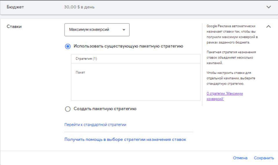 При настройке пакетных стратегий в Google Ads у вас есть выбор: использовать общий бюджет или же свой в каждой кампании.