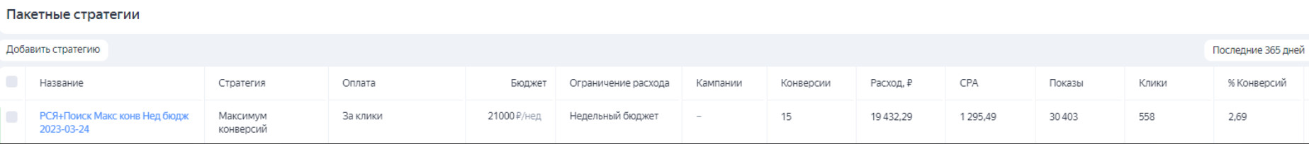 ✅ Стоит учитывать, что объединять в пакетную стратегию нужно только кампании, у которых общие цели. Например кампании, запущенные на разные сайты, не рекомендую объединять.