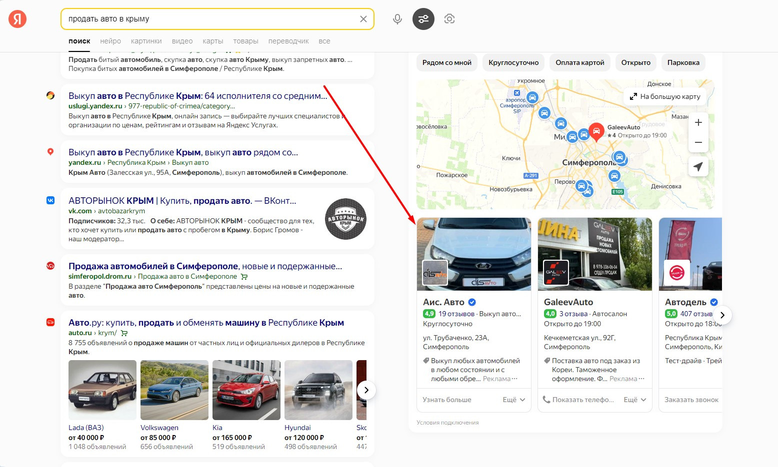 Если человек вводит например поисковый запрос «продать машину в Севастополе», нужно показать ему объявление , в котором в заголовке и тексте будет прописано «Выкупим автомобиль в Севастополе».