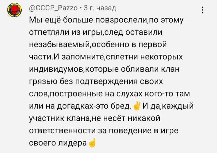 (Но и здесь есть некоторые нюансы.если верить некоторым нормальным PVP стримерам,то среди родни читеров также читерят.У Паззо есть игрок который выходил под ником «cheatsandskills».) 3) сами показывают в собственном видео какого-то читерящего читера.(Как там говорят:"масло масленное") 4) читеры также сами оценивают нормальных игроков. 5) токсичность (это то как кроют матом нормального игрока.даже зарубежных игроков.) 6) помогают с помощью читов выпустить токсичность которое у игроков копится годами (сомнительное оправдание читера.читер и есть читер какое бы оправдание не придумали другие которое присоединяются к читерам по тем или иным причинам.) 7) могут присосаться к любому. 8) Где встречали читаков: 1) в клане «ARC»: 2) в клане «OLD»: Для читера это лишь значит, то что если читер переобуется в любой момент,то всё его темное прошлое сгинет в небытие. Вопрос: Вы же знаете кто выходец из клана «OLD»? Ответ: Всеми известный пвпшный игрок под ником «xa4man». 3) у читака из клана «BRO» был сомнительный игрок: 4) В дискорд сообществе «Darkleam»: Когда в дискорд сервере читеры делают что хотят. Это лишь говорит о том что discord сообщество «Darkleam» не такая уж нейтральная.есть определенные огрехи в этом сообществе. В этом примере в Discord сообществе «Darkleam» читер решает будет или не будет проходить рейд определенный игрок. 5) Вопросы которые напрашиваются: 1) как должен вести себя рандомный игрок когда читер у тебя в группе? Есть ответ. 2) Если читер проходит рейд с другими нормальными игроками,то другие игроки что должны делать? Есть ответ. 3) читер в PVE.значит в PVE читерить не будет? Есть ответ. 4) что значит читерить в одиночных игре ,т.е использовать читы? Считают что любое изменение в одиночных играх которое даёт хоть какое-то преимущество в прохождении.то это считается читом. Не читеришь в одиночной игре это когда без всяких модов и консольных команд и без донатов в игре.т.е пользуешься только игровыми предметами по мере продвижения по сюжету. Ошибочное мнение насчёт читов в одиночных играх в отличие от PVP читов: моды лишь помогают разнообразить саму игру; игрок не обязан донатить в игру даже если есть донат в игре (это не NFT система в играх); 5) нейтральность с читерами как работает и если это вообще работает? Где применяется,а где нет? Только в сказках. Честные пвпшеры пробовали общаться с читерами. Без толку. 6) как влияет статус читера на происходящее? Никак не влияет. Ставит под сомнение нормального игрока. 7) необычные союзы происходят с читерами.как PVE ,так и PVP игроки союзничают друг с другом совместно с читерами.