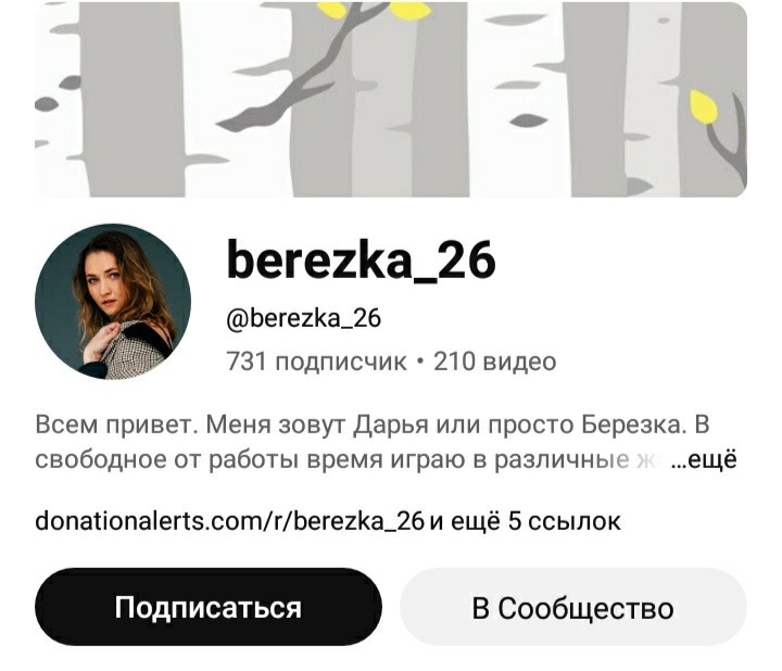 Канал «Берёзовая роща» в Telegram: https://t.me/daryaberezka Если что у неё на ютуб канале есть прямая ссылка на телеграм канал.