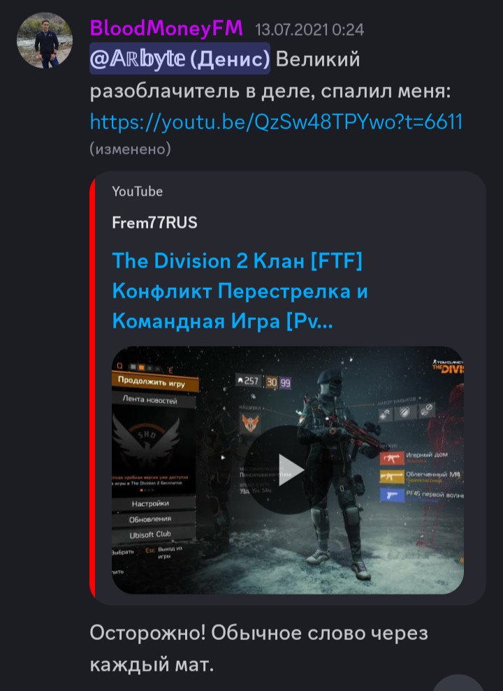 И посмотрите её образ жизни и что она делает. Просто взгляните. Деньги у неё. Под ней диаспоры. https://dzen.ru/a/YMBmQgTwL2UISEGf К примеру: Это пожилой семейный мужик с заметным говором.Он один, но с подвешенным языком.В очках. И имя у него не с РФ. Будьте осторожны!!!! Политически мотивированные игрок. Просто умейте отделять черных которые с berezka_26 и тех черных которые не с ними. потому что те кто с berezka_26 — они политически мотивированные. 10) bamih1 Место работы: если не ошибаюсь , то он работает в экстренной службе. 11) paragvay 12) SEDOY_BOB ПВП игрок. 13) mwrus Собственно это он на собственном стриме с кланом «ARC» в котором самже состоит и рейд проходит: По моему предположению — его ник «mwrus», где первые две буквы это его имя и отчество. «mw» — maks w... [Максим В.] Это его ники: Это на стрим рейде Ivan4aiGames: 14) Ivan4aiGameS