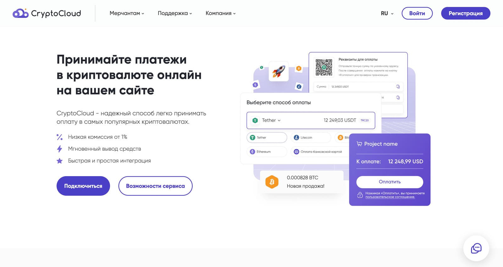 При этом требуется пройти ряд проверок безопасности. Их перечень включает подтверждение личности предпринимателя, предоставление сведений о компании и доказательств того, что сайт принадлежит именно этому юридическому лицу. Кроме того, система проверяет сам сайт: безопасность передачи данных, размещение в свободном доступе политики конфиденциальности и др. Без подключения банковского эквайринга невозможно принимать оплату товаров и услуг, совершаемую онлайн при помощи кредитной или дебетовой карты. Процесс обработки операции включает множество участников: продавец и покупатель, банк-эквайер и банк-эмитент, платежная система и процессинговый центр. Процедура оплаты выполняется за несколько секунд и происходит следующим образом: Криптопроцессинг — это обработка платежей в криптовалюте. Посредником между предпринимателем и покупателем выступает не банк, а платежный шлюз криптовалют. Интеграция криптопроцессинга на сайт упрощает процедуру оплаты товаров и услуг цифровыми активами как для покупателя, так и для мерчанта. Процесс эквайринга криптовалют выглядит следующим образом: Помимо обработки платежей, в перечень функций криптоэквайринга может входить формирование отчетов и статистики, конвертация и покупка криптовалюты на странице чекаута и другие возможности. Существует два вида процессингов: О лучших сервисах процессинга криптовалют мы рассказывали в статье. К основным преимуществам приема криптоплатежей можно отнести: CryptoCloud — это криптопроцессинг, который можно интегрировать как на сайт, так и в Telegram или приложение. Сервис поддерживает Bitcoin, Ethereum, Litecoin, Tether и другие популярные криптовалюты. Их список постоянно пополняется. Функционал сервиса включает: Платежная страница CryptoCloud переведена на 7 языков, что позволяет принимать международные платежи со всего мира. Подключение криптоэквайринга занимает не более часа. Подробные текстовые и видеоинструкции облегчат задачу и помогут разобраться, как принимать платежи в криптовалюте. Доступна интеграция через API, в виде готового модуля на CMS или HTML-виджета. О возможностях и подключении системы читайте в статье «Полный обзор сервиса CryptoCloud для приема криптоплатежей». Оплата кредитной или дебетовой картой — по-прежнему наиболее популярный способ платежа. Тем не менее криптовалюта как дополнительный вариант оплаты может упростить прием платежей из-за границы, повысить конверсию страницы чекаута и привлечь новых клиентов. CryptoCloud — криптопроцессинг, который поможет начать принимать оплату в криптовалюте. Узнайте больше о его возможностях на официальном сайте, найдите ответы на свои вопросы в FAQ или напишите нам в Telegram для получения консультации. Если вы поставите лайк и подпишитесь на наши обновления, то точно не пропустите новых полезных статей. Мы также ждем вас в нашем Telegram-канале, в котором мы публикуем актуальные новости в сфере криптоиндустрии.