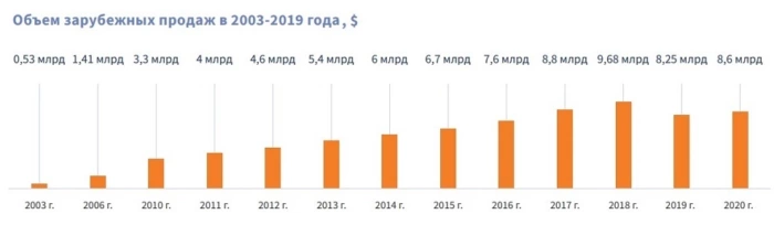 Схожую картину рисует сайт Ru-Stat. Данные за целый год чуть устарели и относятся только к 2020 году, но структура схожая с таможенной статистикой и если посмотреть структуру экспорта допустим лет за десять, то она сильно не менялась. Мы видим следующую картину: Пояснение: Минеральные продукты — это на 95% нефть, а секретный раздел — это на 74% природный газ, а остальное — оружие и самолеты. По поставкам вооружения есть дополнительная статистика. Экспорт оружия в 2020-м году составил 3,2 млрд долларов, и эта статья безусловно относится к высокотехнологичным товарам. График крупнейших экспортеров вооружений можно посмотреть по ссылке — Россия на втором месте. Разберем, что кроется в оставшейся части — в 16% экспорта. К сожалению в этой части не выделена статистика ИТ рынка, которая нас больше всего интересует. Покопаемся в сети — вот что найдено. По данным агентства РУССОФТ российские разработчики ПО продали за рубеж в 2020-м году продуктов на внушительные $8,6 млрд, которые вероятно в силу трудностей с официальным учетом не видны в таможенной статистике. Оценка ЦБ России экспорта «Телекоммуникационных, компьютерных, информационных услуг» существенно скромнее, а именно — $5,9 млрд. Приведем также динамику продаж. Она, достигнув пика в 2018 году стала снижаться, но это снижение связано с покупкой российских компаний зарубежным инвесторам, что говорит об успешности отечественного ПО и по сути рост продаж отечественных разработок продолжается. Посмотрим, что происходит с продажей «железа». Газета «Ведомости», ссылаясь на Минпромторг говорит о росте экспорта радиоэлектроники с $3,4 млрд в 2020 г. до возможных $5,3 млрд в 2021 году (прогноз). И далее добавляет, что «стремительный рост поставок за рубеж объясняется не прогрессом радиоэлектронной промышленности, а нюансами статистического учета: на 95% эти экспортные объемы формируются благодаря поставкам систем ПВО, отмечают эксперты. Продукция гражданского назначения не превышает 5% от заявленного объема экспорта радиоэлектроники, говорят близкие к Минпромторгу эксперты». Иначе говоря речь идет не о 3-5 миллиардах, а о 5% от 3-5 миллиардов долларов, или около $170-250 млн. Столько за рубеж ежегодно поставляется кожи и пушнины. Как будут обстоять дела в связи с последними, осторожно скажем кризисными событиями, мало кто возьмется предсказать, но ясно, что произойдет сокращение экспорта. В связи с этим правительство логично возлагает надежды на поступления от отрасли, которая судя по всему останется на плаву и поможет экономике в целом. Об этом сигнализируют действия властей, которые после 24 февраля стали активно поддерживать ИТ сектор, причем хотят задобрить не только компании, но и их сотрудников. Подборку из более десятка планируемых и уже вступивших в действие мер поощрения ИТ бизнеса можно найти на портале TAdviser, и вот свежая инициатива об отмене плановых проверок. Безусловно поддерживают не только айтишников, но и традиционных, так скажем экспортеров. Статья посвящена экспорту, но буквально пару слов скажу об импорте. Для импортеров наступили нелегкие времена: сотни компаний ушли из российского рынка, ряд банков подпали под санкции и соответственно через них нельзя проводить платежи, плюс трудности с транзакциями (об этом говорилось выше), курс рубля упал. В общем проблем импортерам хватает. Поводом для о