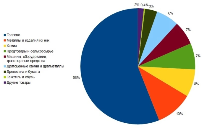 Как видим львиная доля — это сырье и продукты малой степени переработки. Если сложить: углеводороды + металлы + химию + драгоценные камни и драгметаллы + древесину и бумагу, то получим 84%. Не умаляю тяжелый труд людей, связанных с добычей ископаемых, а также хлеборобов и людей других профессий, тем не менее нужно отметить, что основные поступления в казну идут от продажи матушки природы, причем в большей степени за счет невозобновляемых ресурсов.
