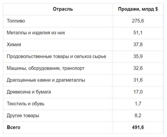Первое, что нужно сделать — взять официальную таможенную статистику за прошлый год. Вот что мы экспортировали за рубеж в 2021 году.