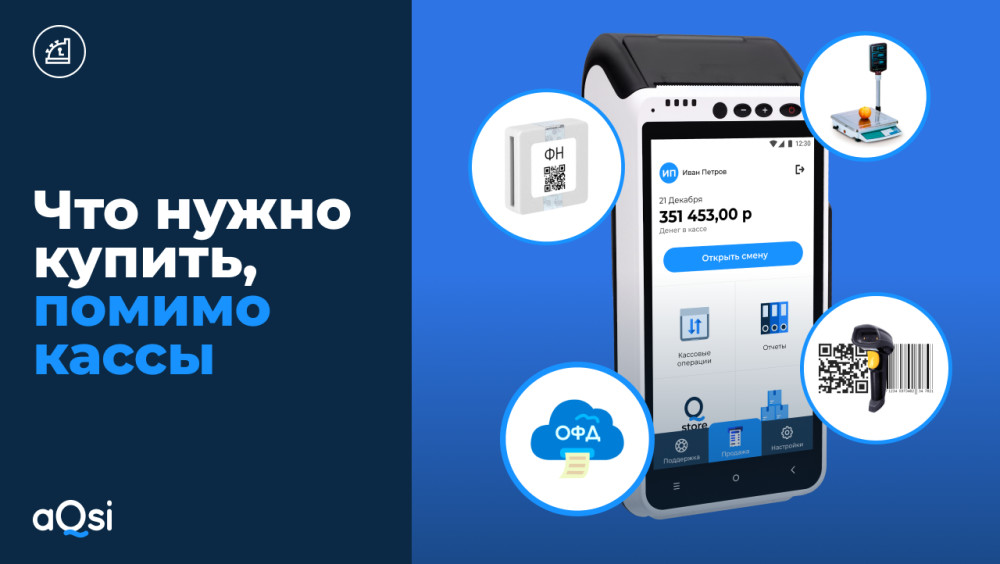 Если же вы планируете продавать весовой товар, вам понадобятся весы. Обычные или с возможностью подключения кассы. В первом случае продавцу необходимо будет взвешивать товар и вручную вводить полученные данные. Во втором — касса автоматически «подтянет» данные с весом, что значительно ускорит работу кассира. Пользователи онлайн-кассы aQsi могут воспользоваться любым способом — подробно об это уже рассказывали.