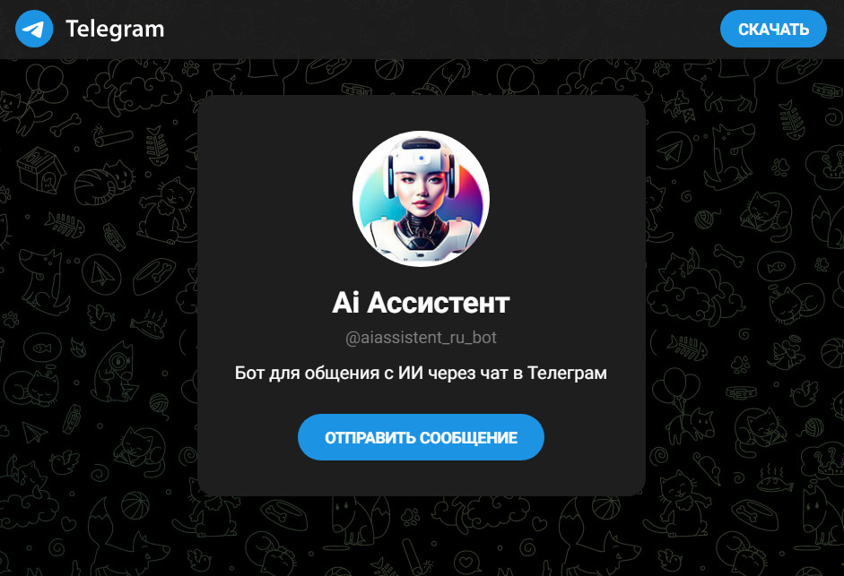 Чтобы начать общаться с ИИ через бота в Telegram, вам достаточно открыть нашего бота Ai Ассистент в своем Telegram. И просто начать задавать ему любые вопросы. Например, можно уточнить какие то факты или события, перевод текста, написание небольших тектов для постов и т.д. Это может быть полезно для бизнеса, чтобы дать клиентам быстрый и эффективный ответ на имеющиеся вопросы.