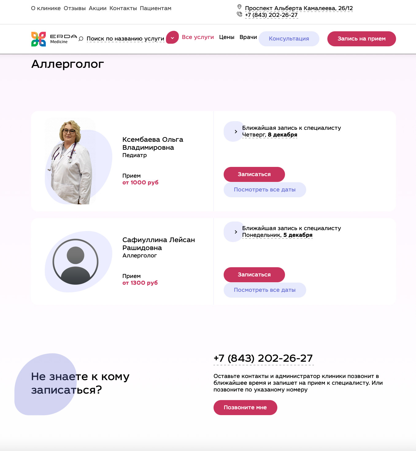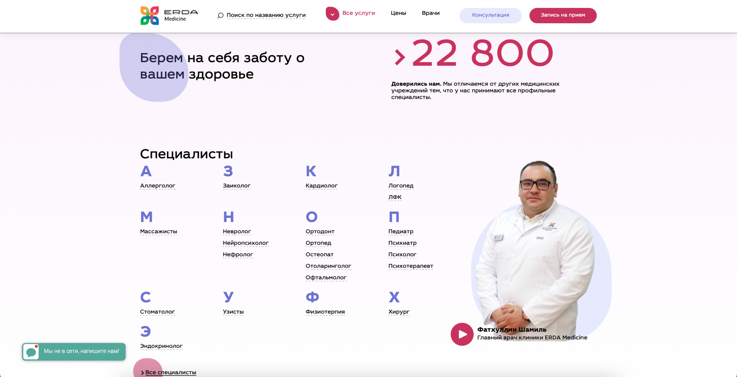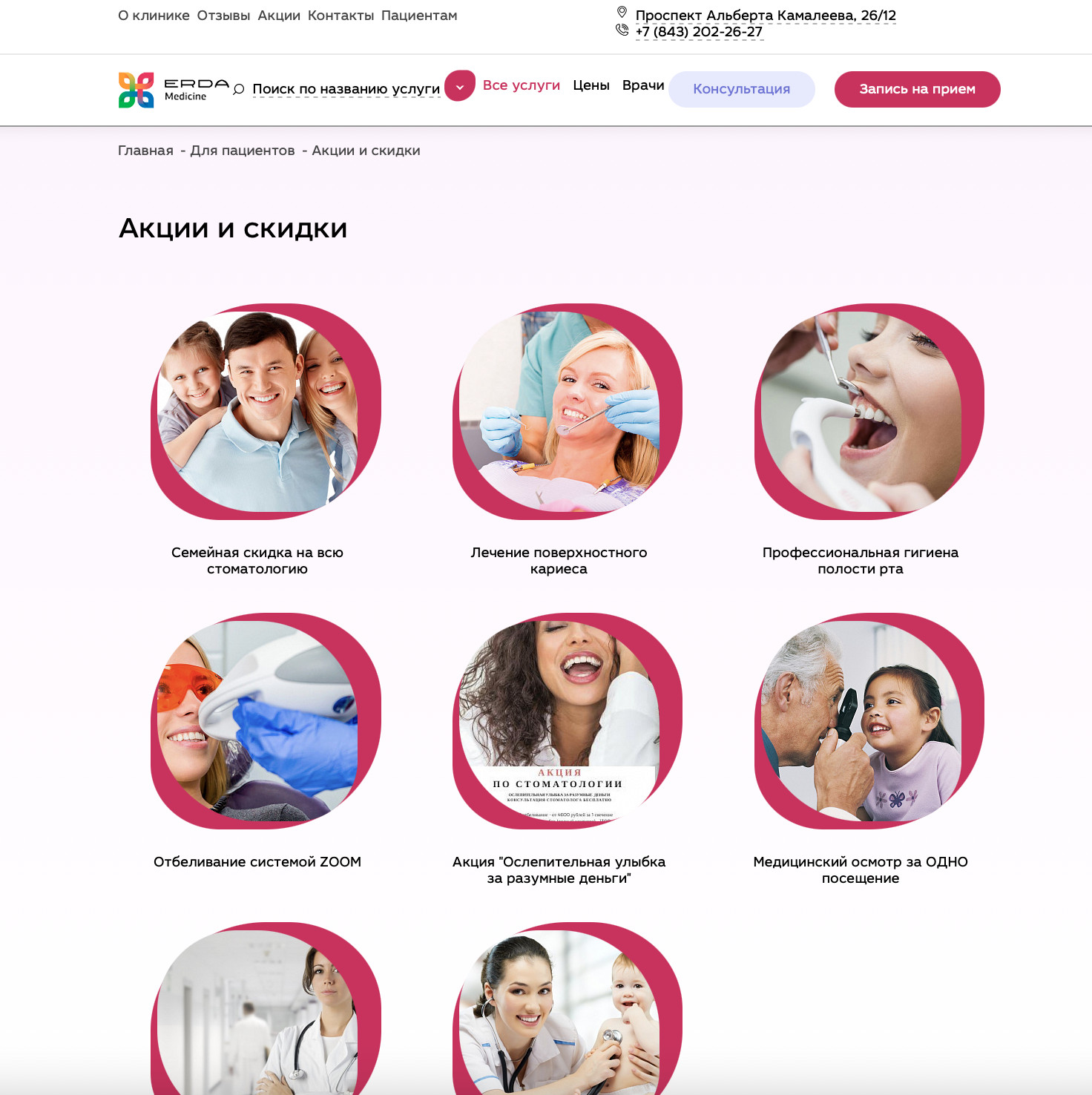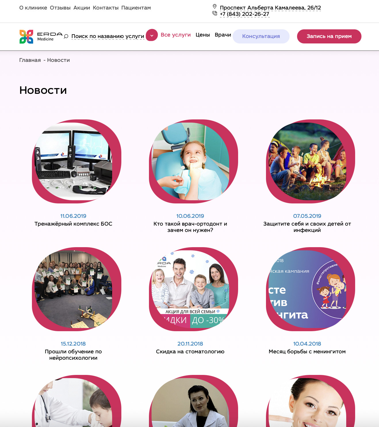 Клиент — детский многопрофильный медцентр Erda Medicine. Опытные специалисты центра осуществляют всестороннее наблюдение за развитием детей. Клиника имеет достаточную популярность в Казани, однако старый сайт не соответствовал требованиям современного дизайна. По этой причине клиент обратился к нам за разработкой нового интернет-портала.