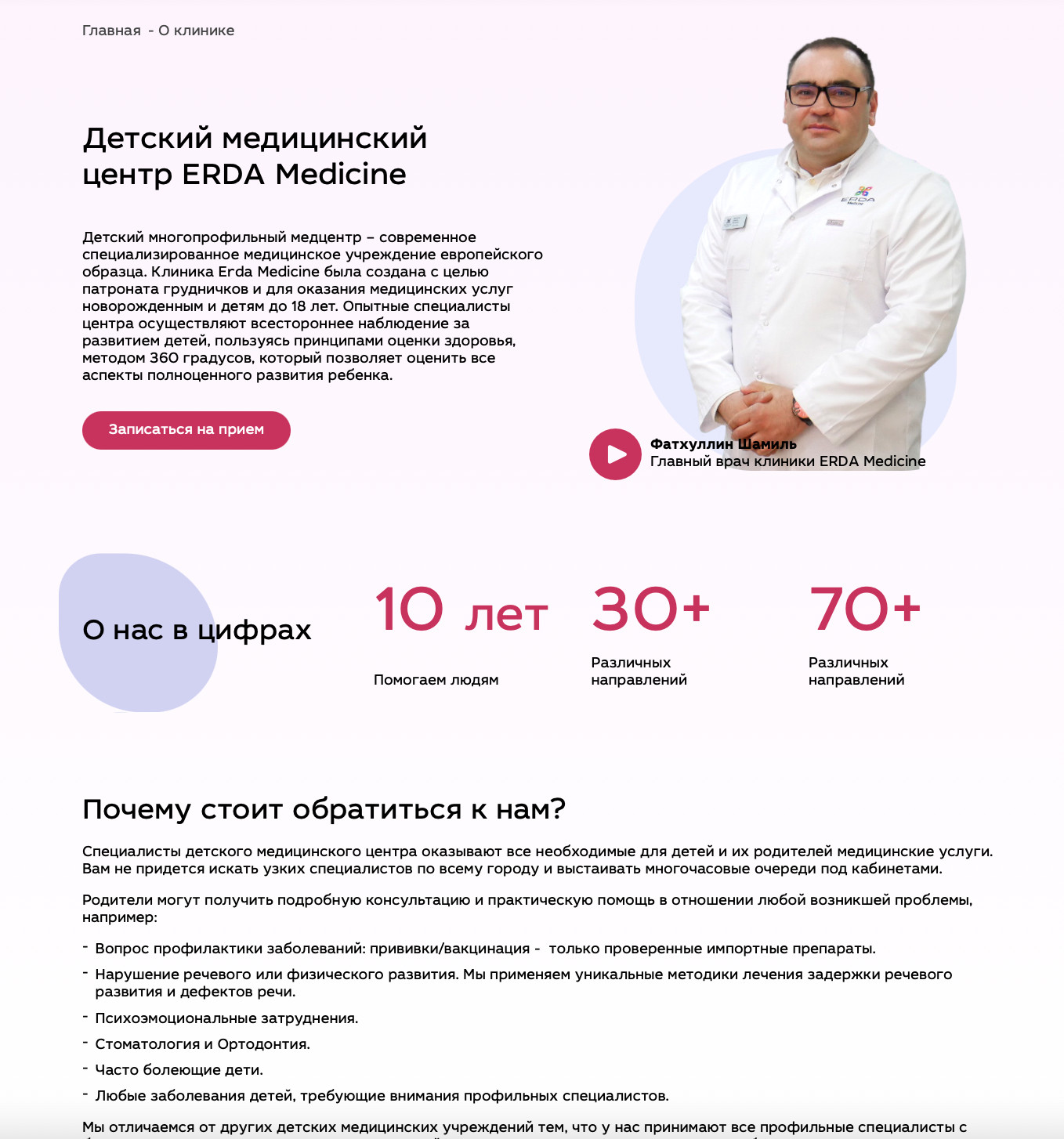 Кейс: сайт для детского медицинского центра ERDA Medicine. Продать услуги через сайт, побеждая предрассудки