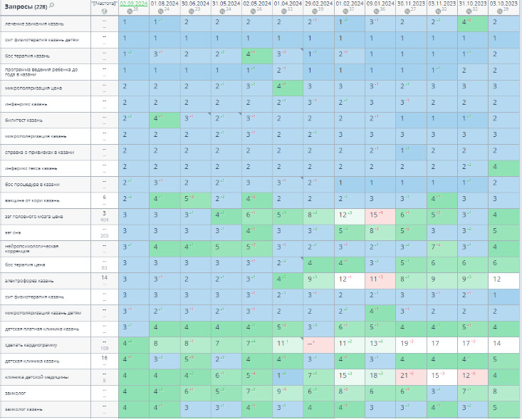 - Сбор семантики — сформировали полное ядро под направления педиатрии, вакцинации, логопедии и других услуг.