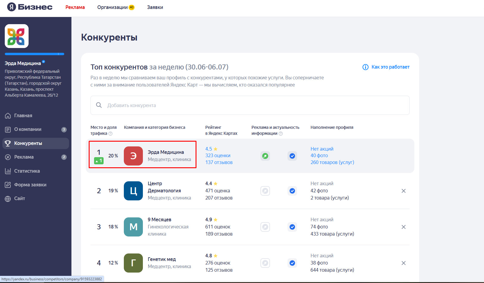 - Анализ конкурентов — определили сильные и слабые стороны конкурирующих клиник.