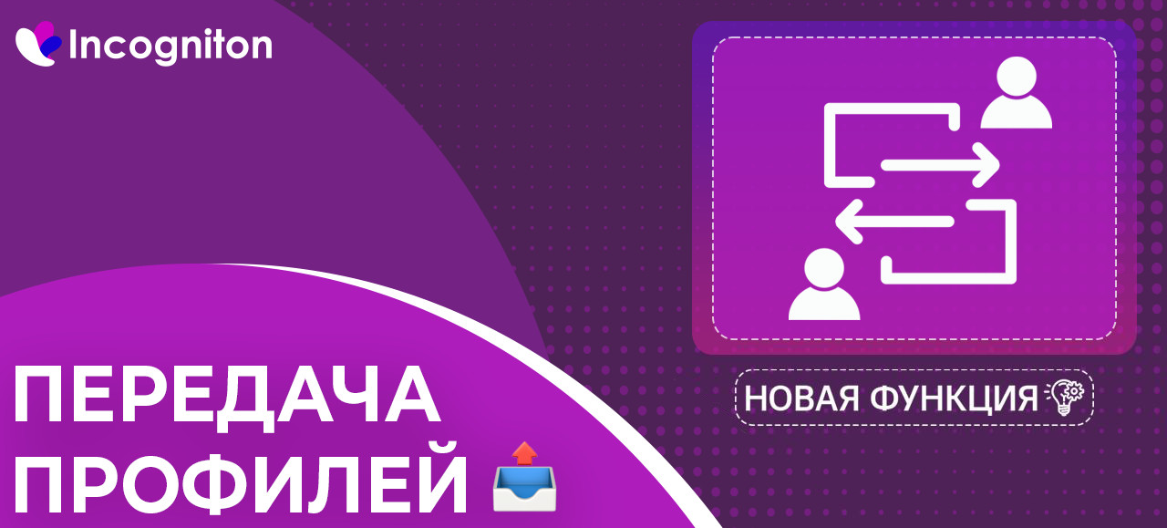 Как вы уже могли понять, главная задача этой функции — полная передача профиля другому пользователю Incogniton со всеми настройками и данными внутри. Это может понадобиться если вы решили продать, обменять или просто отдать аккаунт/другую информацию внутри профиля.