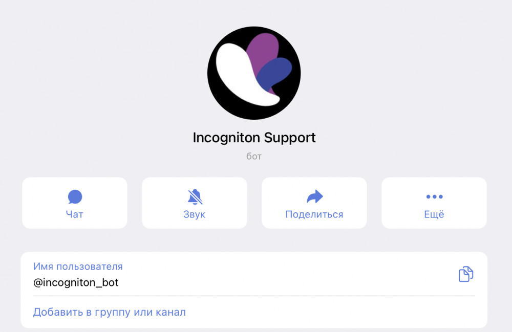 многие из вас уже наверняка знают, что у нас есть поддержка в Telegram по адресу @incogniton_bot.