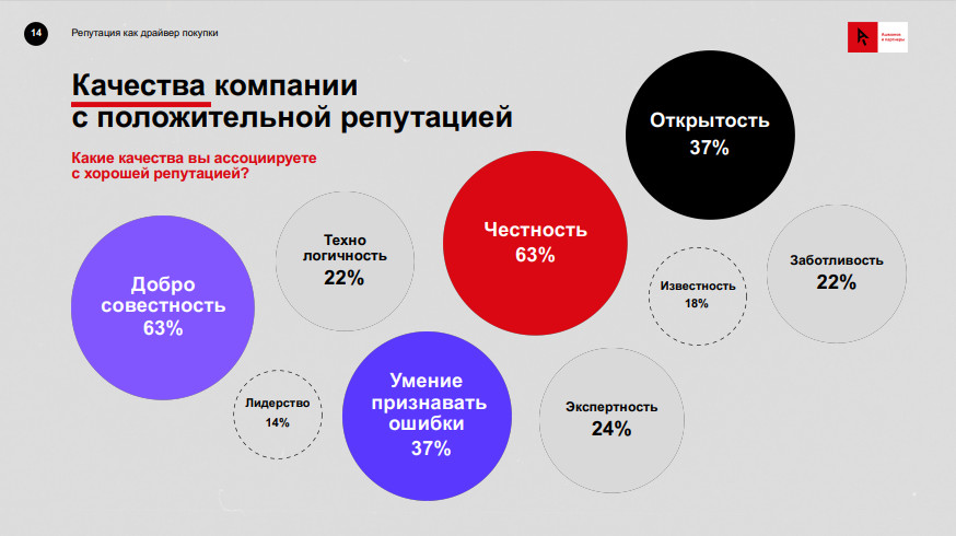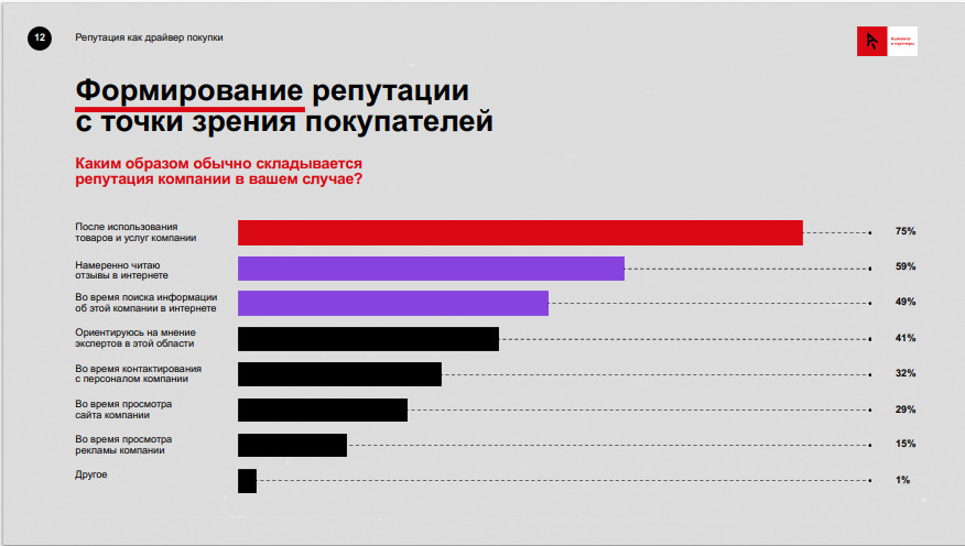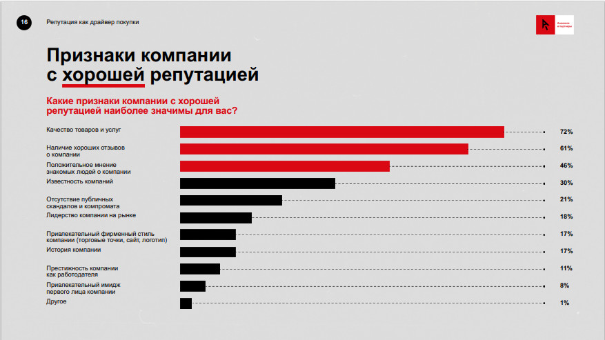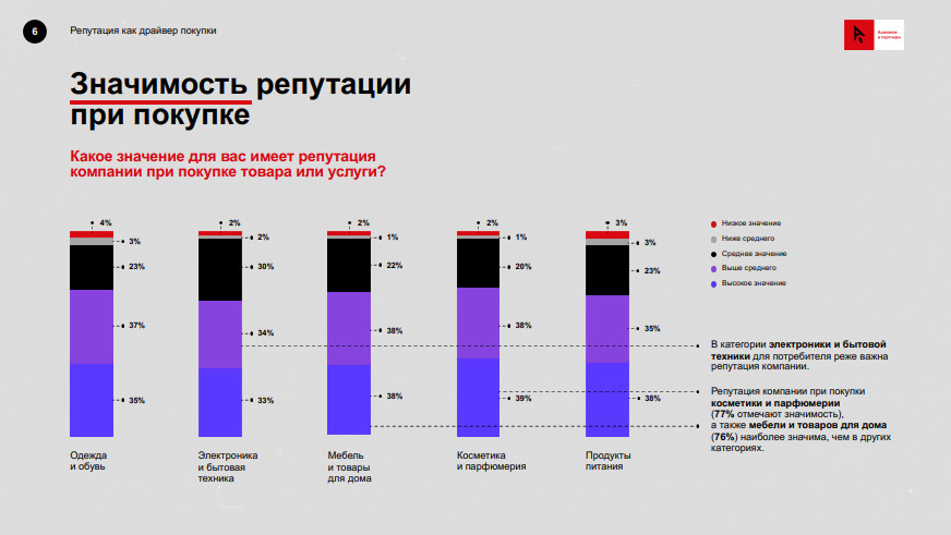 Для 73% опрошенных репутация бренда играет значимую роль при покупке товаров.