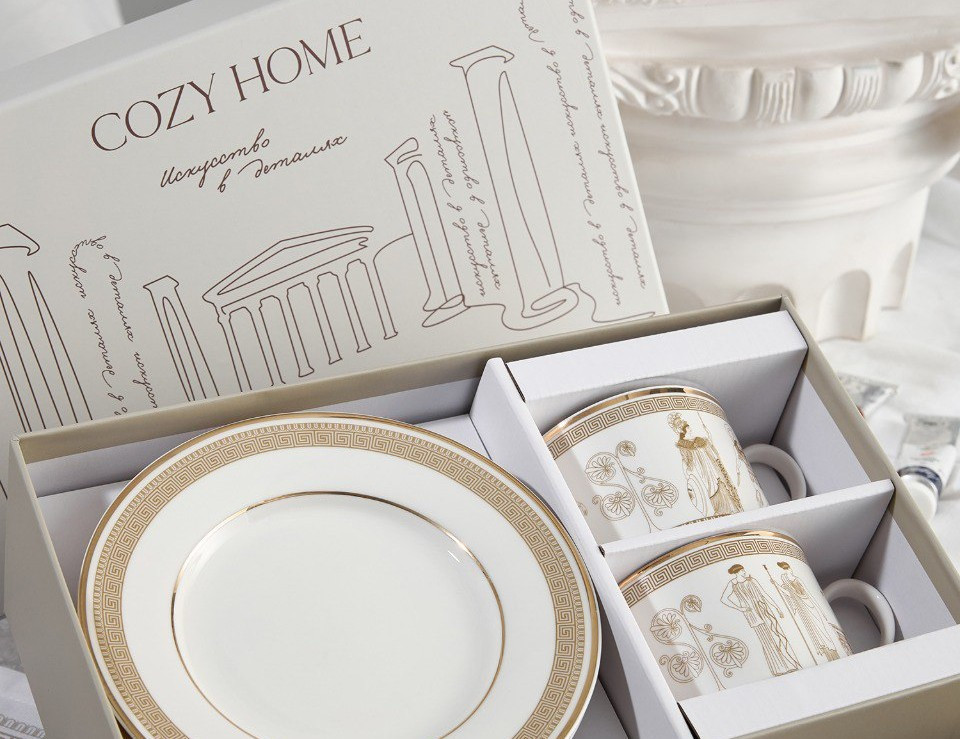 COZY HOME тоже в тренде — мы выпустили коллекцию фарфоровой посуды по мотивам античных экспонатов ГМИИ им. А.С. Пушкина.