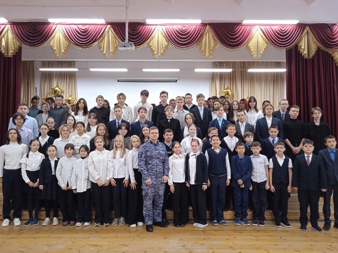 Встреча с росгвардейцем вызвала огромный интерес у ребят. Рассказ гостя с удовольствием слушали мальчишки и девчонки.