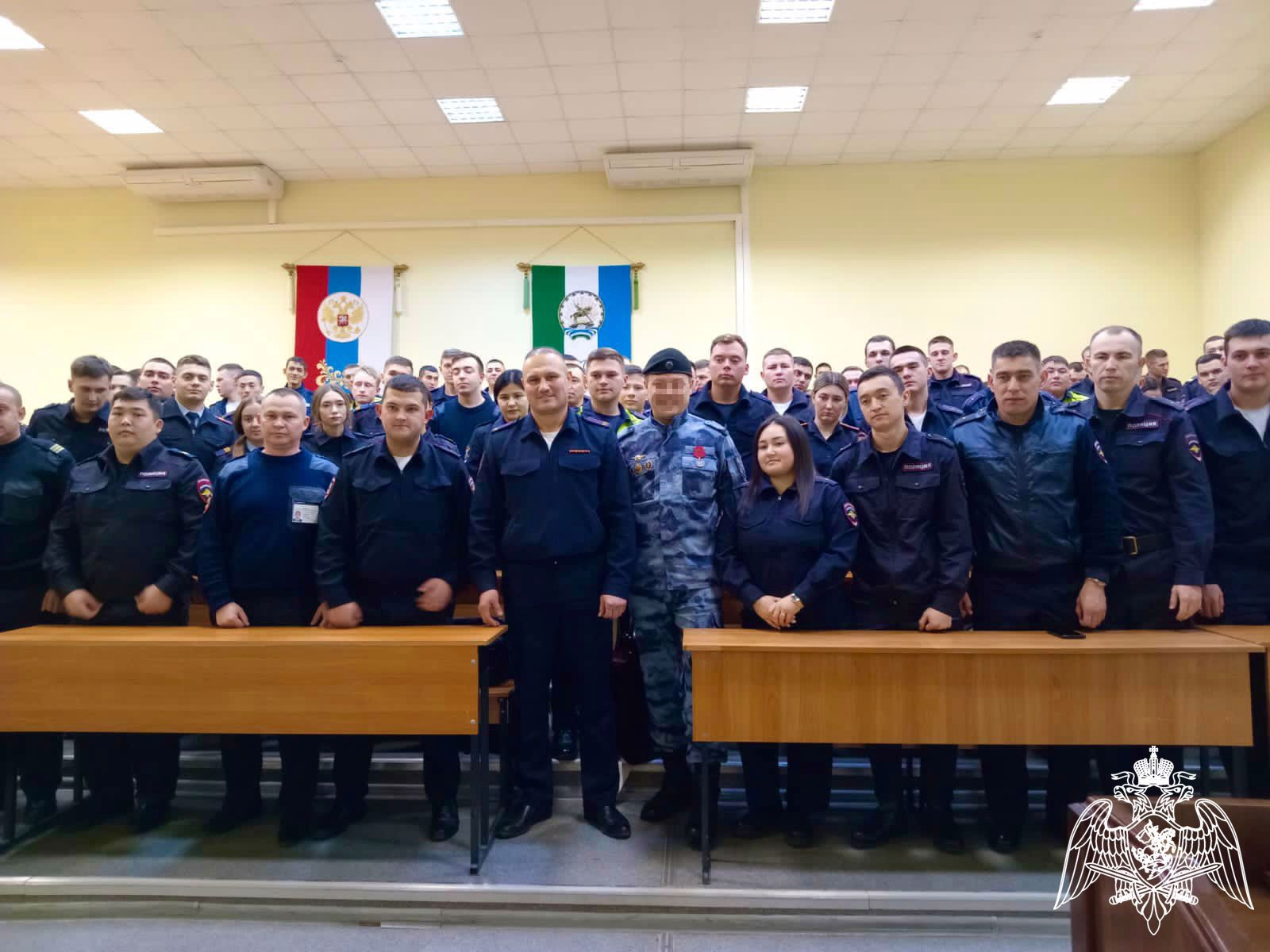 В Уфе в преддверии празднования дня сотрудника ОВД РФ офицер ОМОН «Урал» Управления Росгвардии по Республике Башкортостан провел «Урок Мужества» с переменным составом факультета профессиональной подготовки Уфимского юридического института МВД РФ.