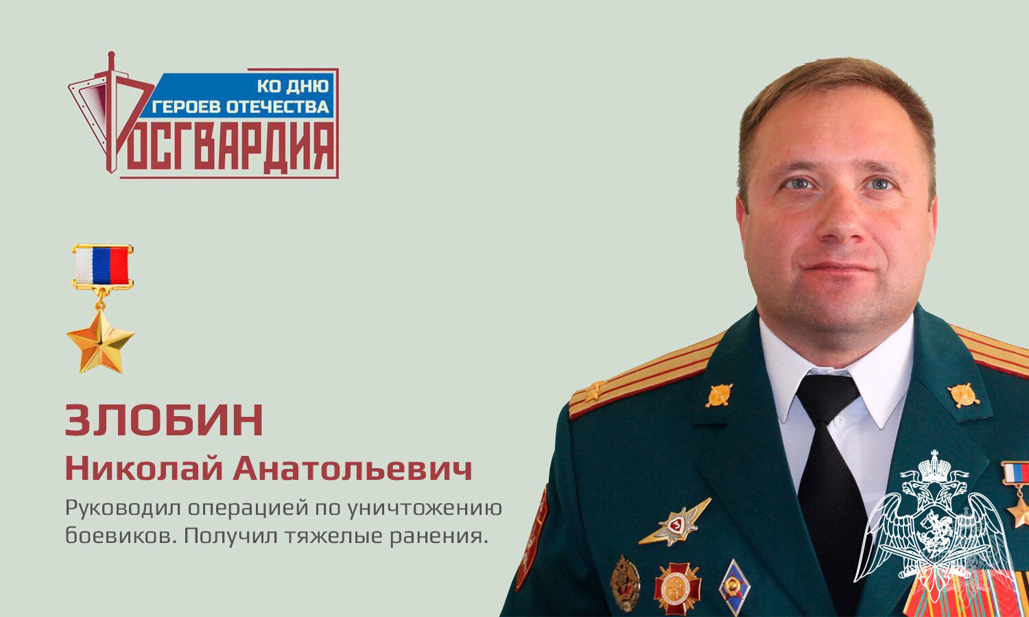 Указом Президента Российской Федерации от 4 августа 2010 года за мужество и героизм, проявленные при исполнении воинского долга в Северо-Кавказском регионе, майор Злобин Николай Анатольевич удостоен звания Героя Российской Федерации.
