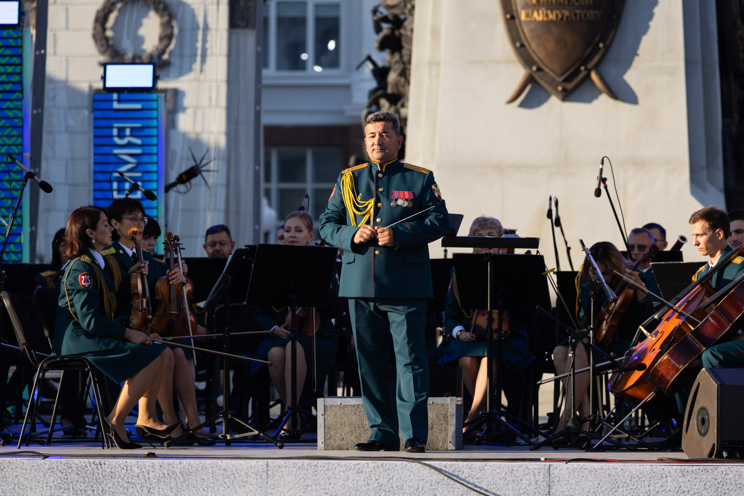 Под инструментальный аккомпанемент ведущего творческого коллектива Росгвардии, которым руководит начальник военно-оркестровой службы — главный военный дирижер Росгвардии, заслуженный артист Республики Башкортостан полковник Азат Шахмухаметов, прозвучали песни военных лет и современные патриотические композиции. Восторженная публика отблагодарила военных музыкантов Росгвардии продолжительными аплодисментами.