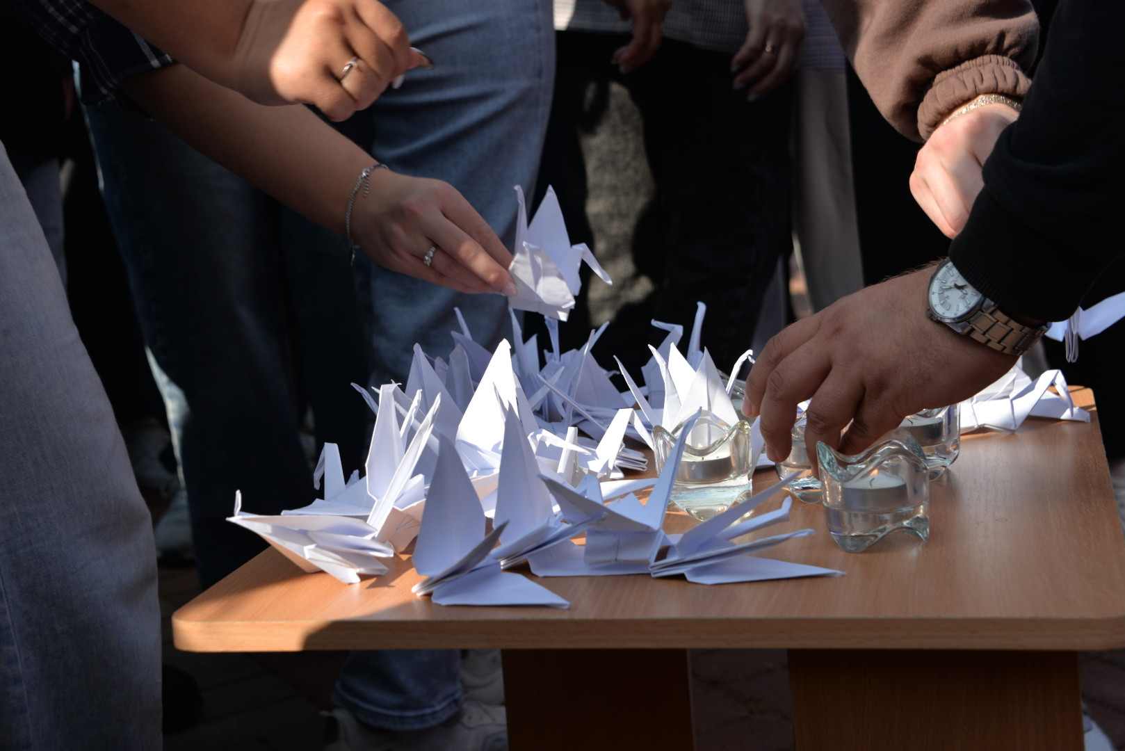 3 сентября в УУНиТ прошла молодежная акция, посвященная Международному дню солидарности в борьбе с терроризмом, где приняли участие и студенты первого курса. Выступили гости-эксперты, актеры студенческих театральных коллективов «Оскон», «Гротеск» и «Сэлэт». В зоне акции участники возложили символические предметы скорби и памяти (цветы, оригами и т.д.)