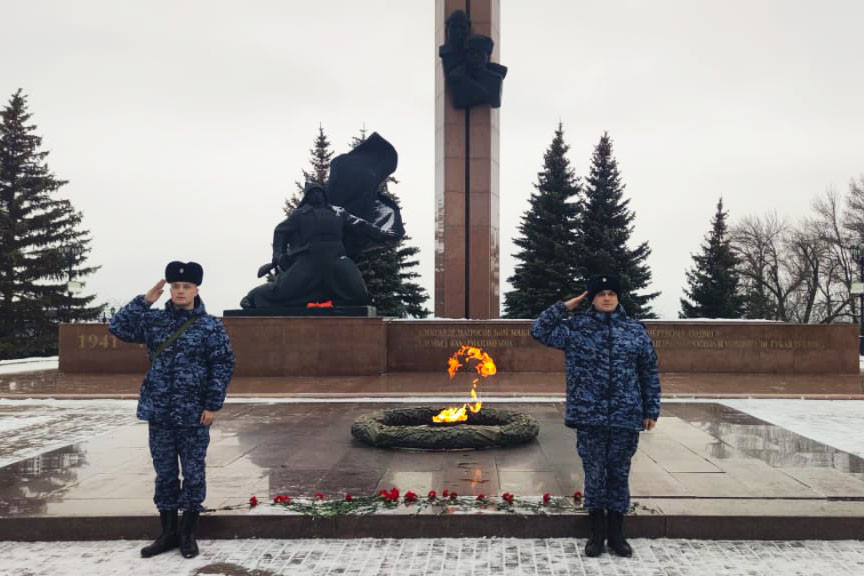 Росгвардейцы Башкортостана возложили цветы к Вечному огню в День Неизвестного Солдата