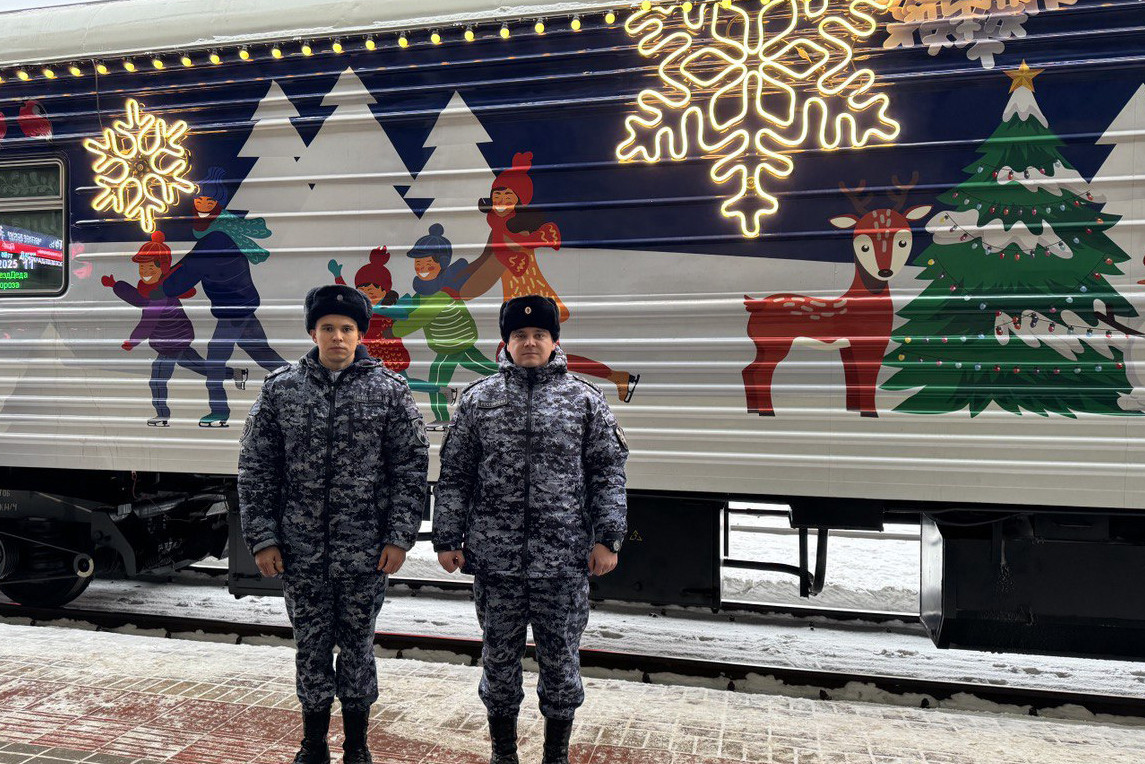 Росгвардейцы совместно с сотрудниками линейного отдела полиции на транспорте и территориального ОВД обеспечили общественный порядок и безопасность пребывания поезда Деда Мороза городах и районах республики. Поезд Деда Мороза — это празднично оформленная передвижная резиденция главного волшебника страны, который путешествует с остановками на крупных станциях нашей страны. Традиционно поезд Деда Мороза отправился в путешествие из Великого Устюга. За 54 дня своего маршрута он посетит более 60 российских городов.