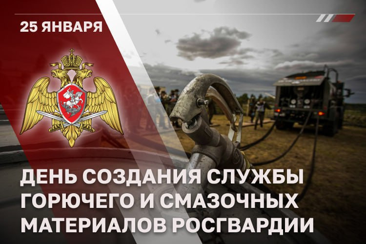 25 января военнослужащие службы горючего и смазочных материалов войск национальной гвардии Российской Федерации отмечают 31-ю годовщину образования.На протяжении всей своей истории войска национальной гвардии Российской Федерации гарантированно обеспечиваются качественными горюче-смазочными материалами в любых условиях. Создана и постоянно развивается современная материально-техническая база службы горючего, позволяющая содержать установленные запасы нефтепродуктов.В войска регулярно поступают новые образцы технических средств службы горючего и смазочных материалов, отвечающие современным требованиям.С самого начала проведения специальной военной операции основные усилия сил и средств службы горючего и смазочных материалов сосредоточены на выполнении сложнейших задач в экстремальных условиях боевой обстановки. Специалисты службы горючего проявляют мужество и в кратчайшие сроки приним