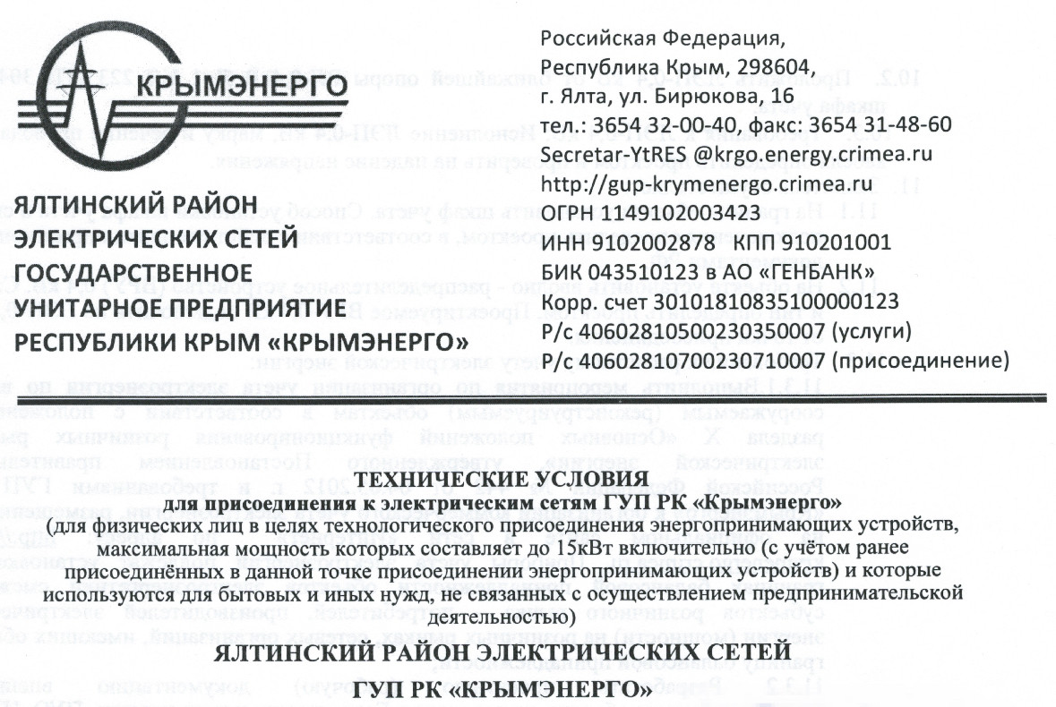Крымэнерго подключение к электросетям, получение технических условий