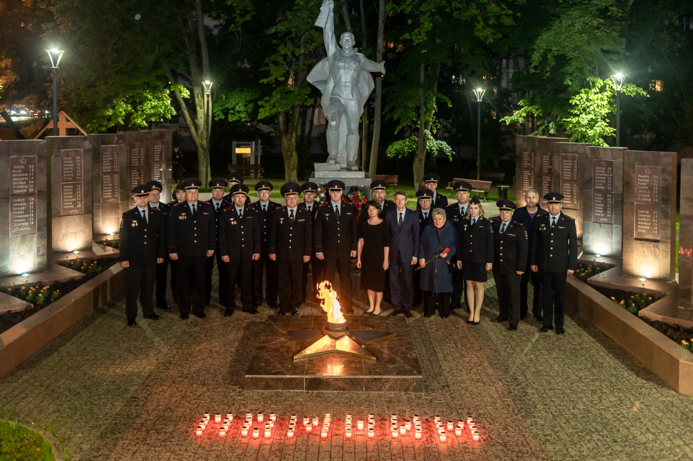 Далее все участники мероприятия возложили цветы к памятнику жителям Троицка, погибшим в годы Великой Отечественной войны, и в рамках акции «Свеча памяти» выложили зажжёнными свечами слово «Помним» в знак глубокой признательности людям, отстоявшим независимость нашей страны.