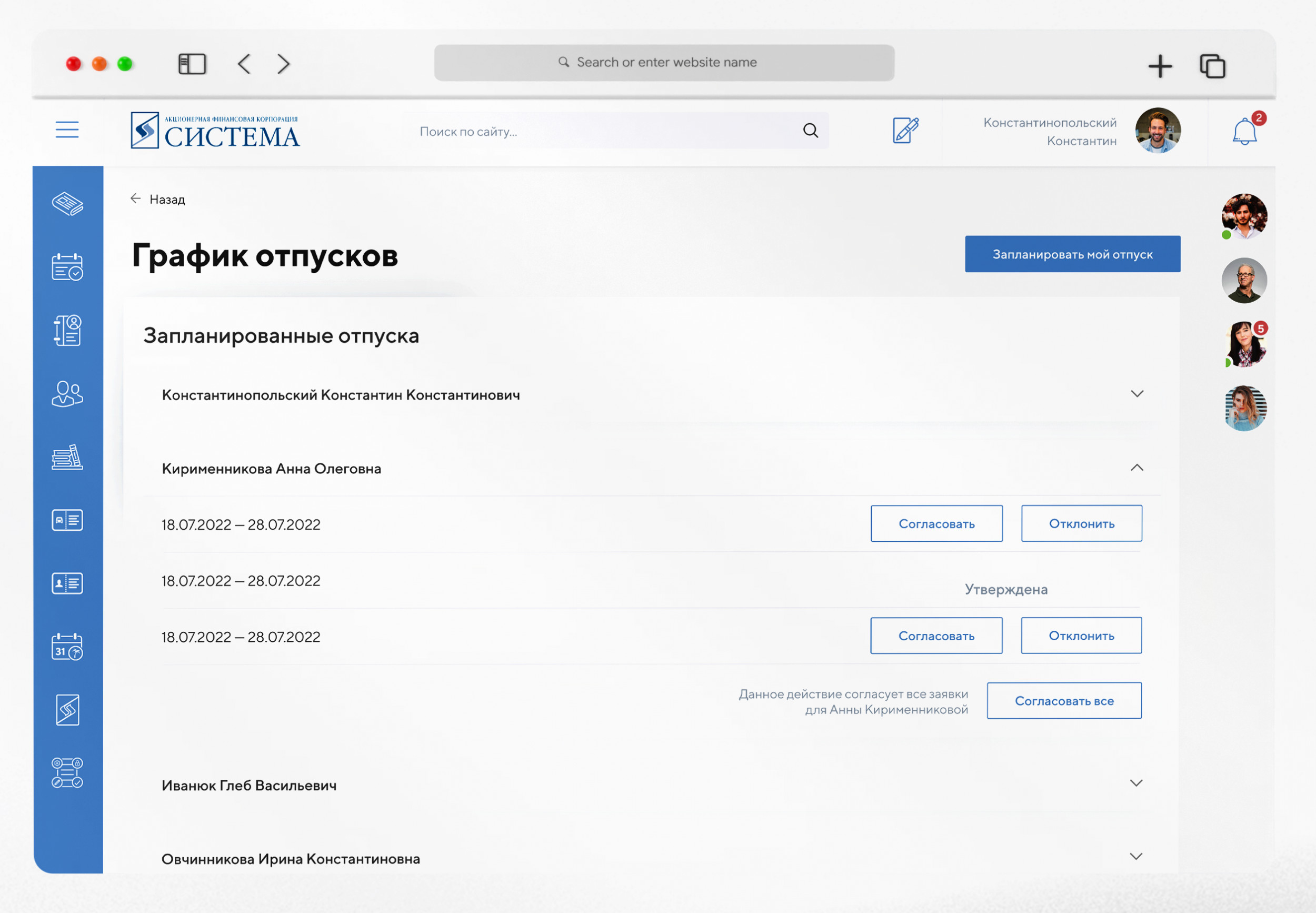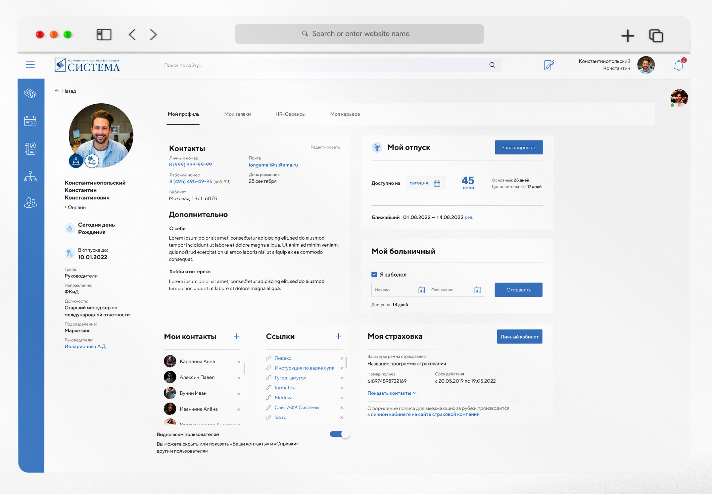 Сотрудники теперь наглядно видят в личном кабинете, какие заявки находятся в работе, кто ответственный за их выполнение, сроки выполнения, какие справки уже готовы и возможность их скачать из карточки заявки. Польза для бизнеса — Автоматизация оформления отпусков Раньше согласовывали отпуска вручную: сотрудник писал руководителю, руководитель фиксировал даты и передавал в отдел кадров. Не было наглядного графика отпусков. Компания перешла от ручного согласования отпусков на бумаге к оцифрованному процессу на портале: сотрудники компании стали тратить меньше времени на процессы согласования, а HR-отдел избавился от путаницы с пересечением графиков и унифицировал процесс оформления. Особенности реализации: В силу особенностей заказчика, была реализована нестандартная оргструктура без стандартных уровней вложенности. Администратор корпоративного портала регулирует оргструктуру в реальном времени и при необходимости создает департаменты и отделы, прикрепляя к ним сотрудников. Отдельно команда QSOFT разработала матрицу ролей пользователей: рядовой сотрудник, руководитель, дополнительный согласующий отпусков, HR-админ, Президент компании. Мы учли в бизнес-логике решения особенности оргструктуры, чтобы корректно формировать и отображать пул данных по отпускам в каждом отделе. В решении реализована интеграция с 1С:ЗУП для загрузки данных о доступном количестве доступных отпускных дней сотрудника для планирования отпуска. Польза для бизнеса — Личный кабинет сотрудников У компании не было системы личных кабинетов, коммуникация между сотрудниками была затруднена. Мы создали удобный интерфейс ЛК, который позволяет сотруднику держать всю полезную информацию под рукой — нужные контакты и ссылки в корпоративном портале а не на внешнем сервисе, удобный инструмент управления заявками. В Личном кабинете представлена вся основная и наиболее используемая пользователем информация: личные данные, основные контакты, заявки, есть qr-код для быстрого создания контакта в телефоне Польза для бизнеса: — Цифровой кадровый резерв Работа с кадровым резервом велась в разрозненных внешних источниках, часть информации терялась, не было единого цифрового инструмента для аккумуляции данных о резервистах. Внедрена единая база резервистов в онлайн-режиме, доступная на любом устройстве. Польза для бизнеса: — Новостная лента компании Отсутствовал официальный новостной ресурс. Информация доходила до сотрудников неполной или неточной. Компания получила возможность оперативного и автоматизированного информирования сотрудников, вовлечения в работу и повышения чувства причастности ко всем процессам компании. Польза для бизнеса: Цифры проекта Результаты проекта Концепция интранет-портала и мобильного приложения создавались «с нуля», с чистого листа. Симбиоз корпоративного портала и мобильного приложения стал для компании АФК «Система» фундаментом который можно легко масштабировать и развивать в разрезе функциональности и пользовательской нагрузки. Корпоративный портал и его адаптив для мобильного приложения обеспечил единую точку входа к корпоративным ресурсам и базовым внутренним сервисам, а также создал экосистему для коммуникации, обучения и развития сотрудников.